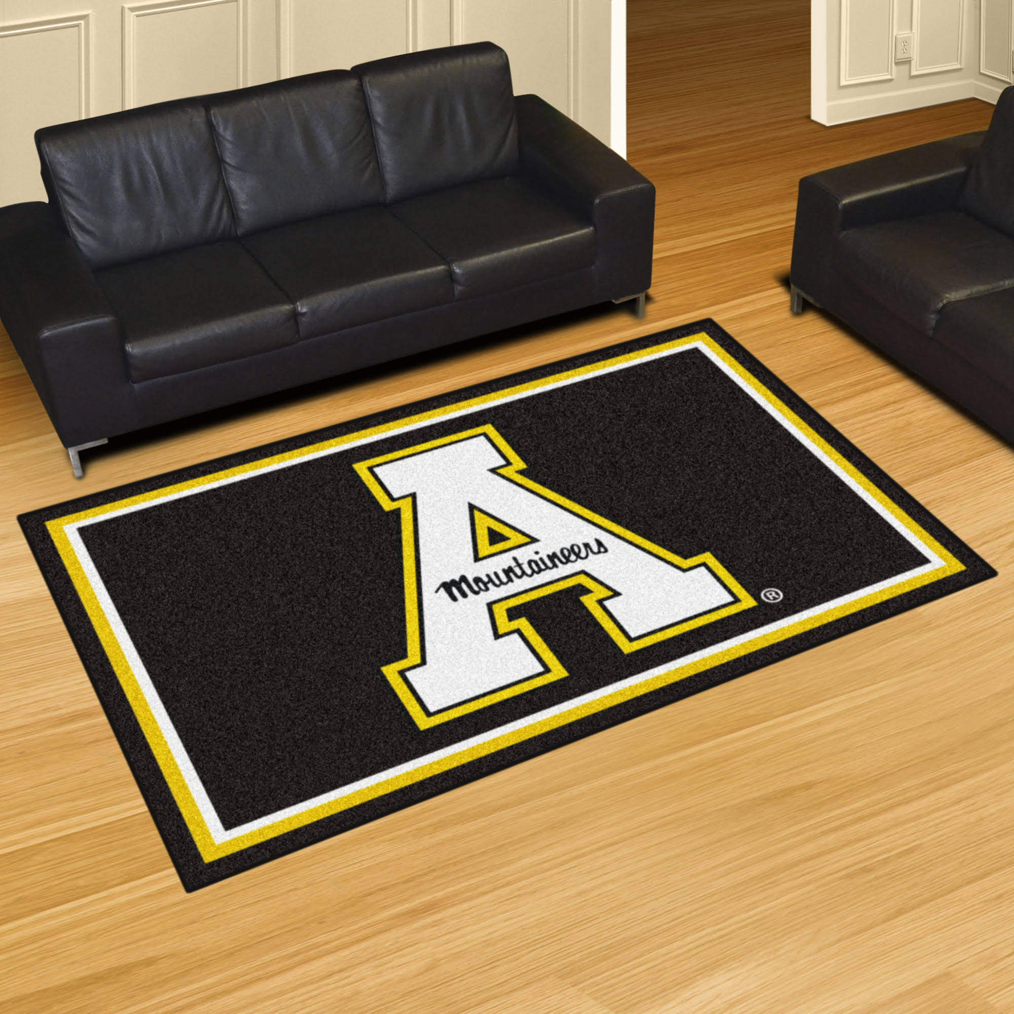 Appalachian State 5'x8' Rug 32 oz., 100% Nylon Face Duragon latex backing for a durable and longer-lasting product Machine made in the USA Non-skid backing to ensure stability Vacuum regularly and spot clean Chromojet-printed in true team colors Show off your team pride in a big way! 5'x8' ultra plush area rugs won't leave any doubt about who you will be rooting for on game day! Non-skid backing keeps rug in place. Made of 32 ounce nylon carpet, which feels great on your feet. Chromojet printed in vibrant true team colors. Cleaning is a breeze, just vacuum regularly. Great for game rooms and man caves!