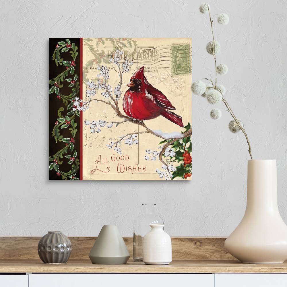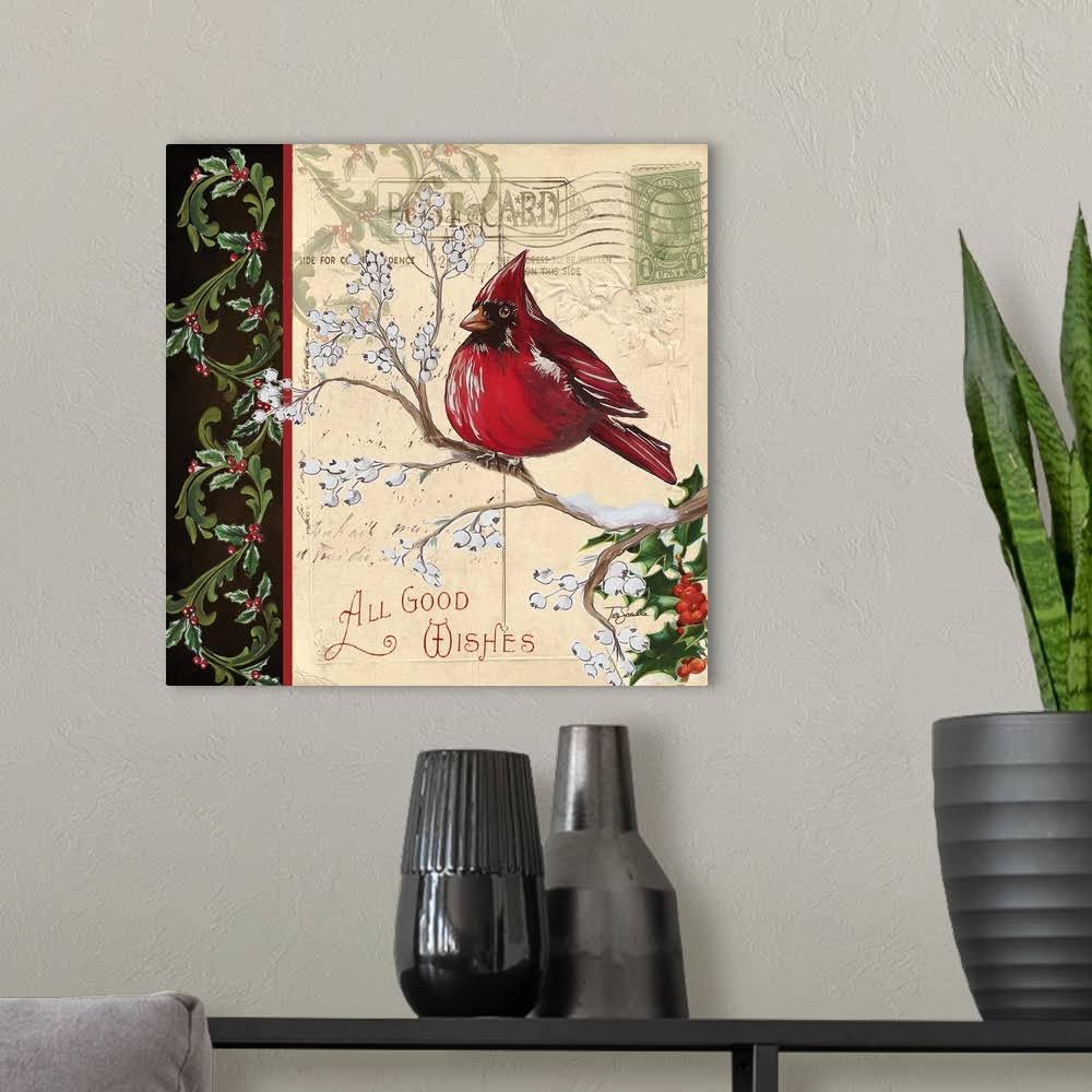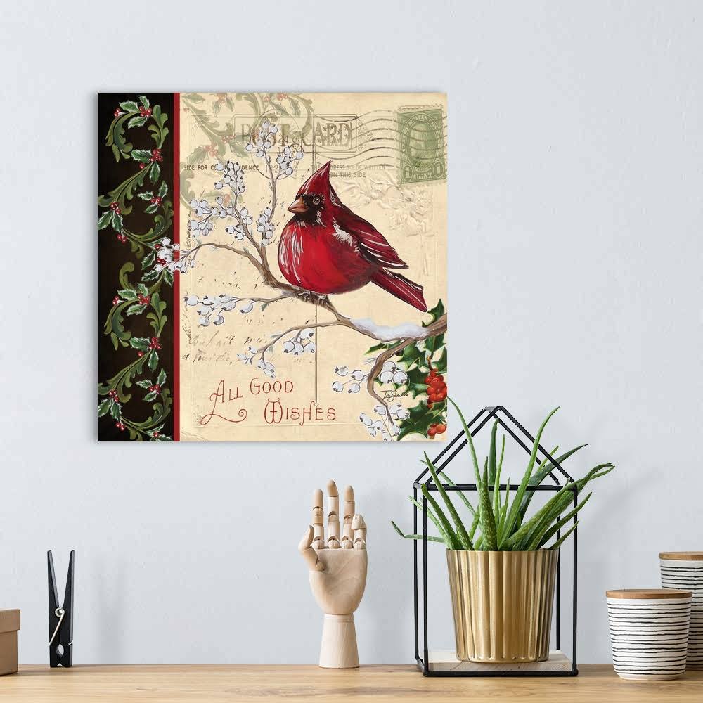 Christmas Bird Postcard III | Canvas Wall Art | 16x16 | Great Big Canvas
