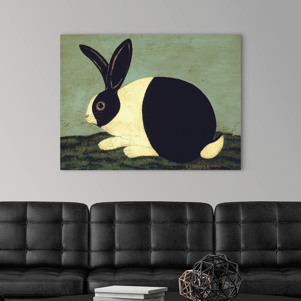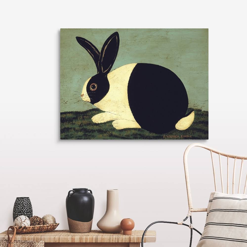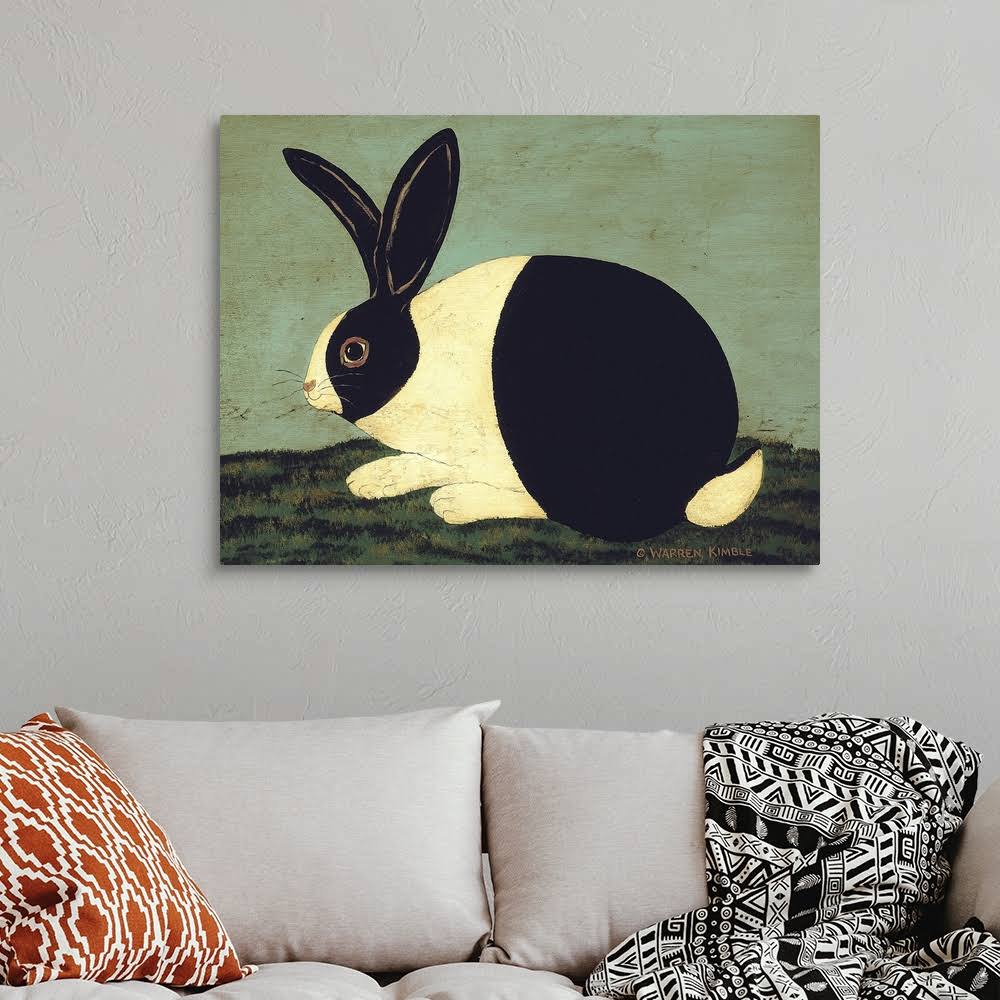 Americana bunny scene by renowned folk artist Warren Kimble. Multiple sizes available. Primary colors within this image include Light Gray, White, Dark Navy Blue. Made in the USA. All products come with a 365 day workmanship guarantee. Inks used are latex-based and designed to last. Archival inks prevent fading and preserve as much fine detail as possible with no over-saturation or color shifting. Canvas depth is 1.25 and includes a finished backing with pre-installed hanging hardware.