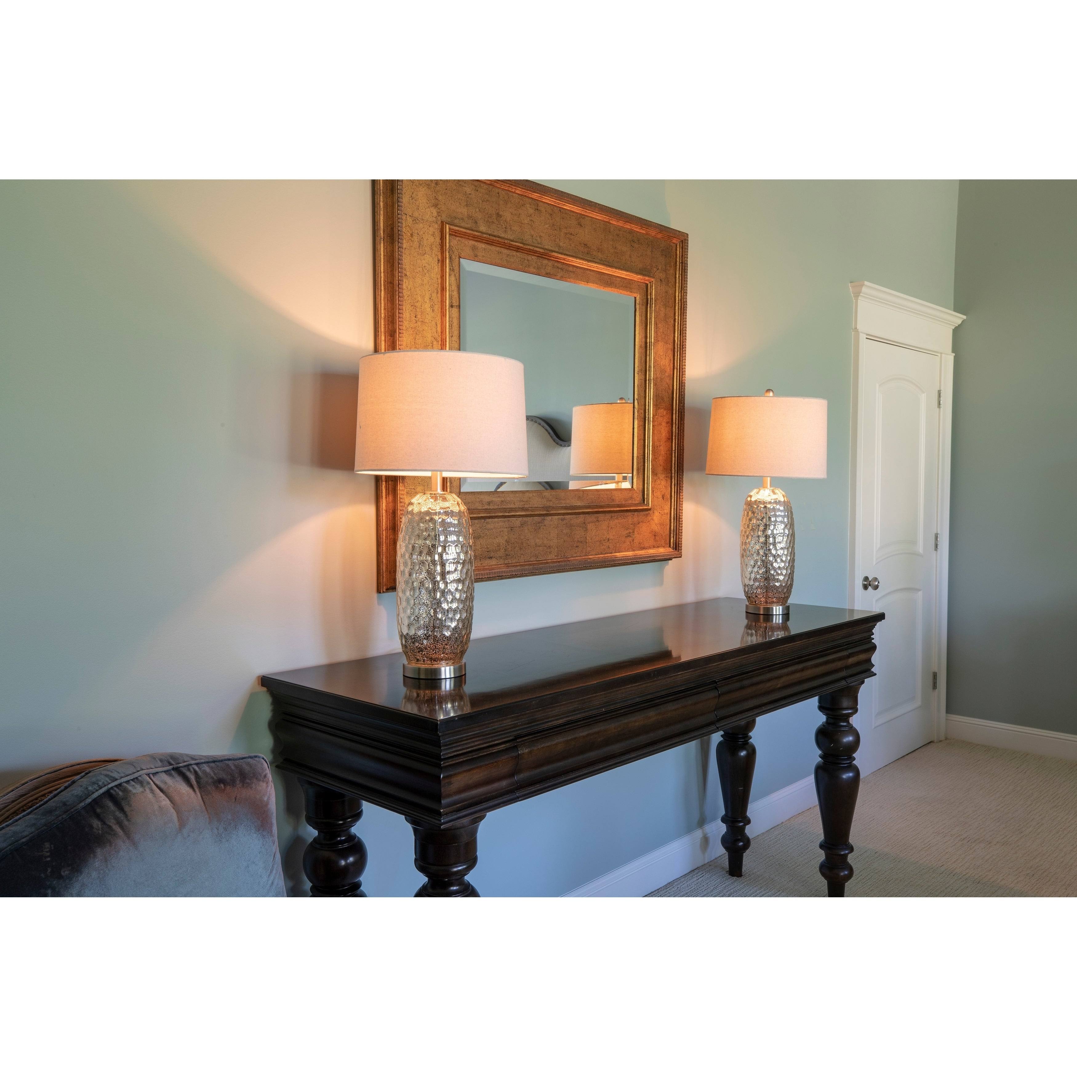 Take your living space design to the next level by adding this alluring Dimple Glass Table Lamp Set. The dimple effect of the glass base adds a subtle touch of texture. The vintage feel for these table lamps pair well with the neutral drum shade.