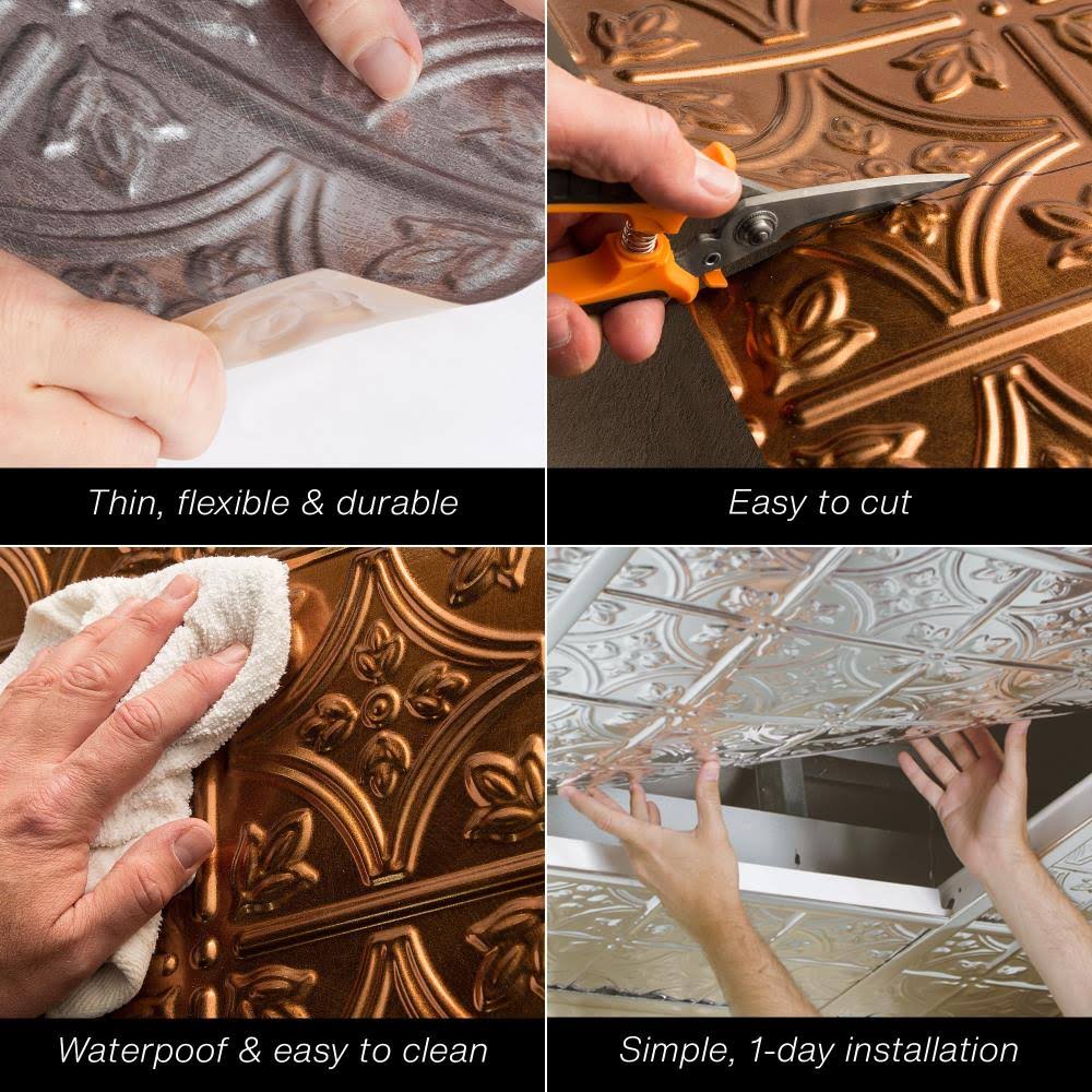 Fasade Dome Decorative Vinyl 2ft x 2ft Lay in Ceiling Tile in Argent Silver (5 Pack)