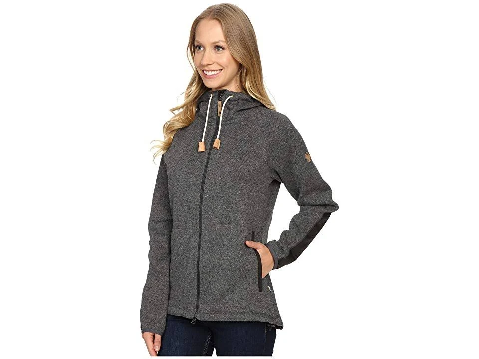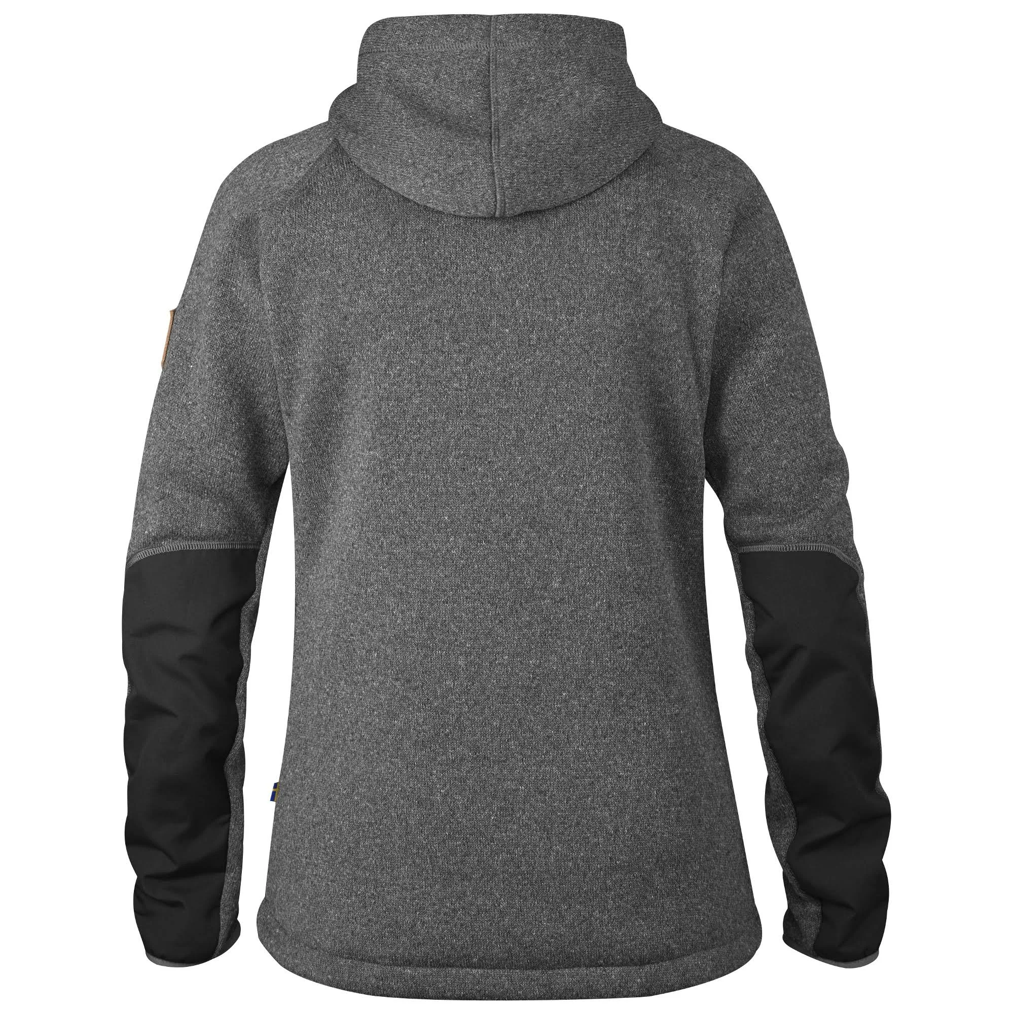 Warm and comfortable fleece jacket in recycled polyester with a knitted exterior. Fixed hood with drawcord adjustment, hand pockets and reinforcements in G-1000. Warm and cosy fleece jacket with a knitted exterior and a soft brushed inside. Perfect as an insulating mid layer under a shell jacket on autumn or winter adventures, and just as comfortable for long afternoons with a good book in front of the fire. It has a fixed hood with a drawcord adjustment and the zipper at the front has a protective flap in G-1000 original that protects the chin. The elbows, hem, pockets and inside of the edge of the hood also have G-1000 for extra durability. Two spacious pockets with zippers. Elastic binding at the sleeve cuffs and drawcord adjustment at the hem. The fleece and mesh lining in the pockets are made from recycled polyester and produced using an environmentally friendly process that both spins and dyes the fibres at the same time. This leads to much lower levels of water and energy consumption compared to traditional dyeing techniques.