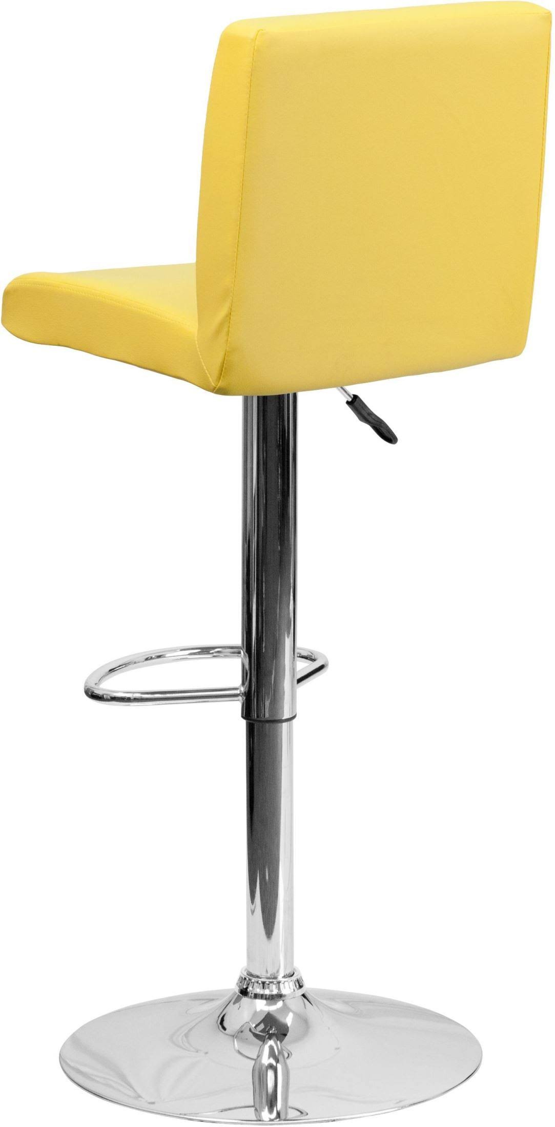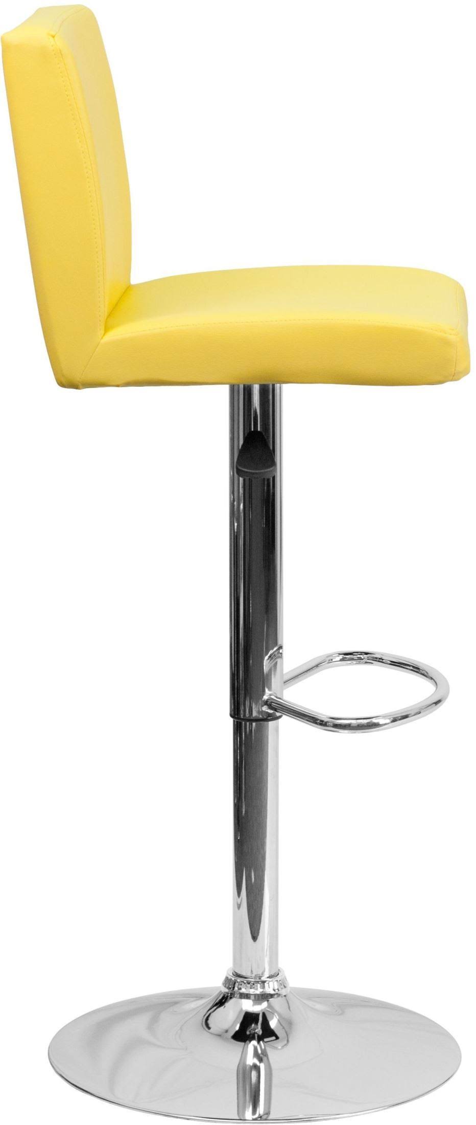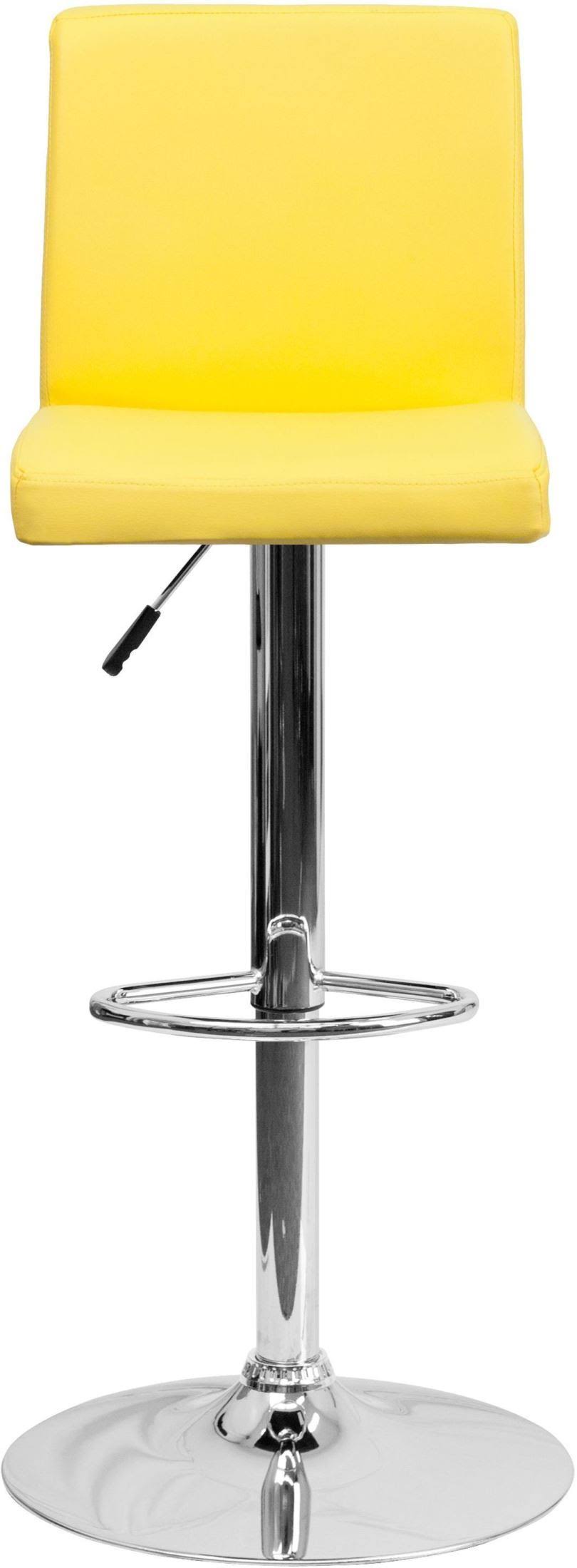 The yellow vinyl, adjustable height barstool is a great fit for your home bar, game room or kitchen island. The seat and back are padded with 2ft '' of ca117 fire retardant foam and upholstered in luxurious yellow vinyl. The swivel seat easily adjusts from counter to bar height using the convenient gas lift-handle, located just below the seat. The chrome base and footrest complement the stool's modern design and this stool will hold up to 330 pounds. Designed for residential use, this yellow vinyl barstool is an excellent choice when you want a contemporary look for your home.