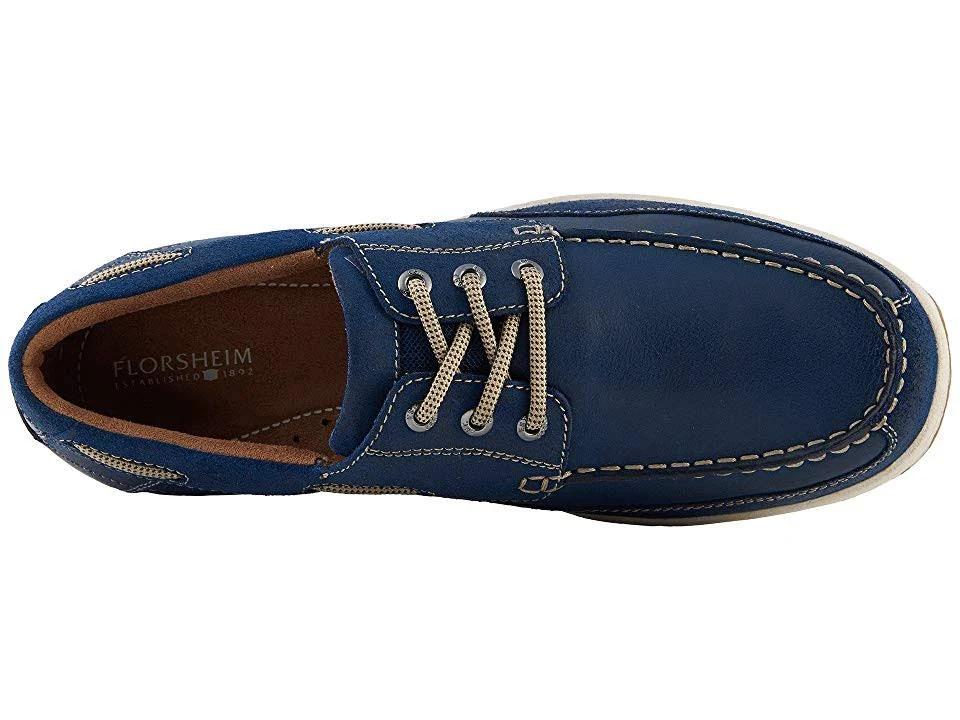 Boatside style in the Lakeside Moc Toe Oxford from Florsheim. Suede and leather upper in a boatshoe oxford style with a moc toe. Lace up closure. Cushioned collar for added comfort. Wraparound laces with contrast stitching details. Cushioned collar for added comfort. Suedetec lining with cushioned comfort footbed. Durable rubber traction outsole.