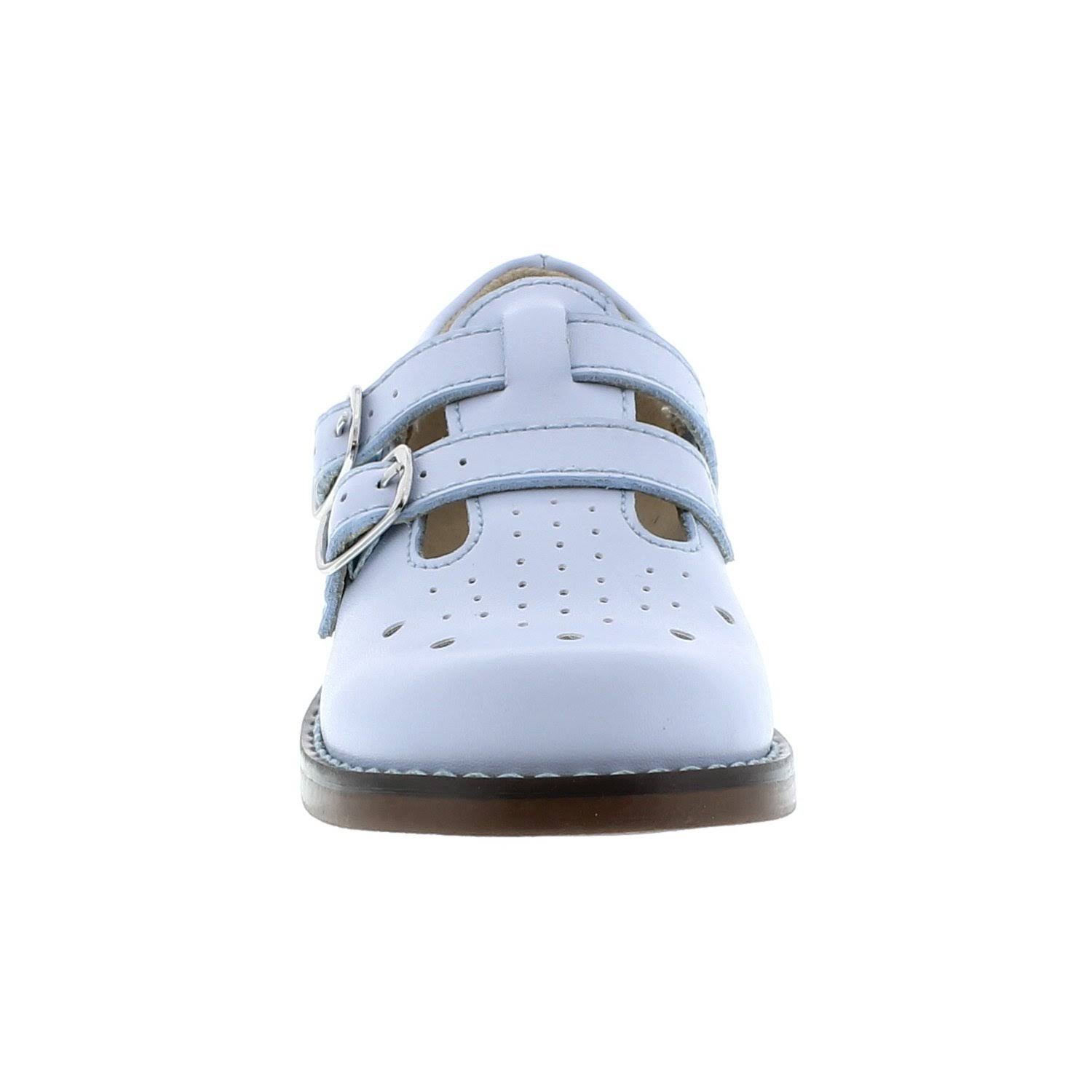 Custom Fit System – Removable, dual insoles in Medium and Wide provided for customized fitting. Roomy Toe Box – Allows tiny toes room to breathe and splay naturally during walking, enhancing balance and reducing rubbing, friction, and moisture. Arch Support – Shoe last and insole designed to provide proper arch support for developing feet. Firm Heel Counter – Provides stable lateral support for new and confident walkers alike, improving balance, support, and posture. Padded collar for comfort. Premium smooth leather upper with traditional perforated vamp design. Breathable leather lining and cushioned leather lined foot-bed for all-day comfort. Double buckle closure for traditional adjustability and secure fitting. Flexible, Slip-Resistant Rubber Outsole – Provides maximum flexibility, shock absorption, stability and slip-resistance for safety and comfort. Non-marking outsole. Imported.