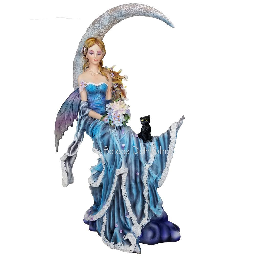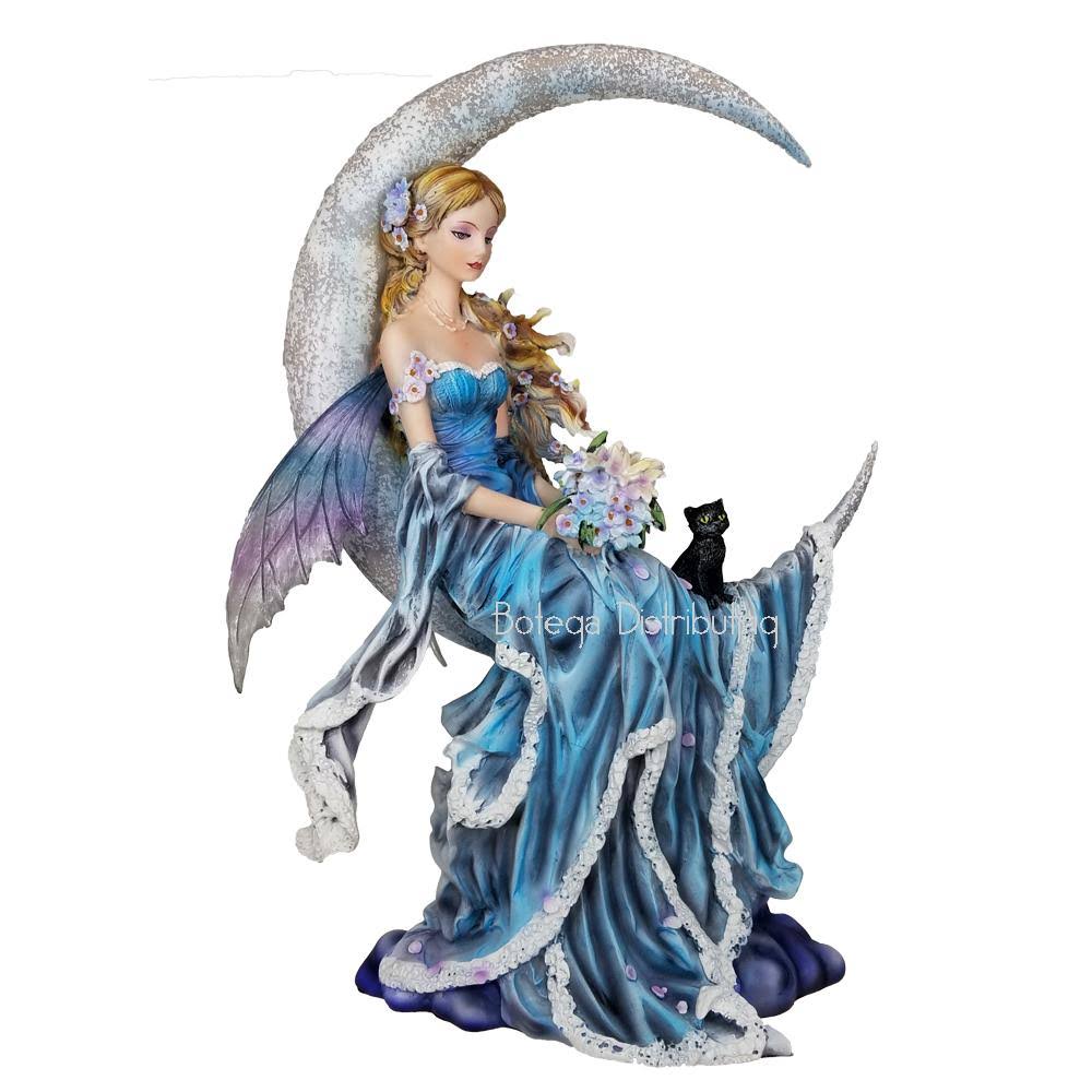 Hand painted cold cast resin statue. Approx Dims: 7 1/4 x 4 1/4 x 11 1/8. Pop-Culture Beautiful crescent moon fairy designed by renowned artist Nene Thomas. Hand painted cold cast resin. Approx Dims: 7 1/4 x 4 1/4 x 11 1/8.