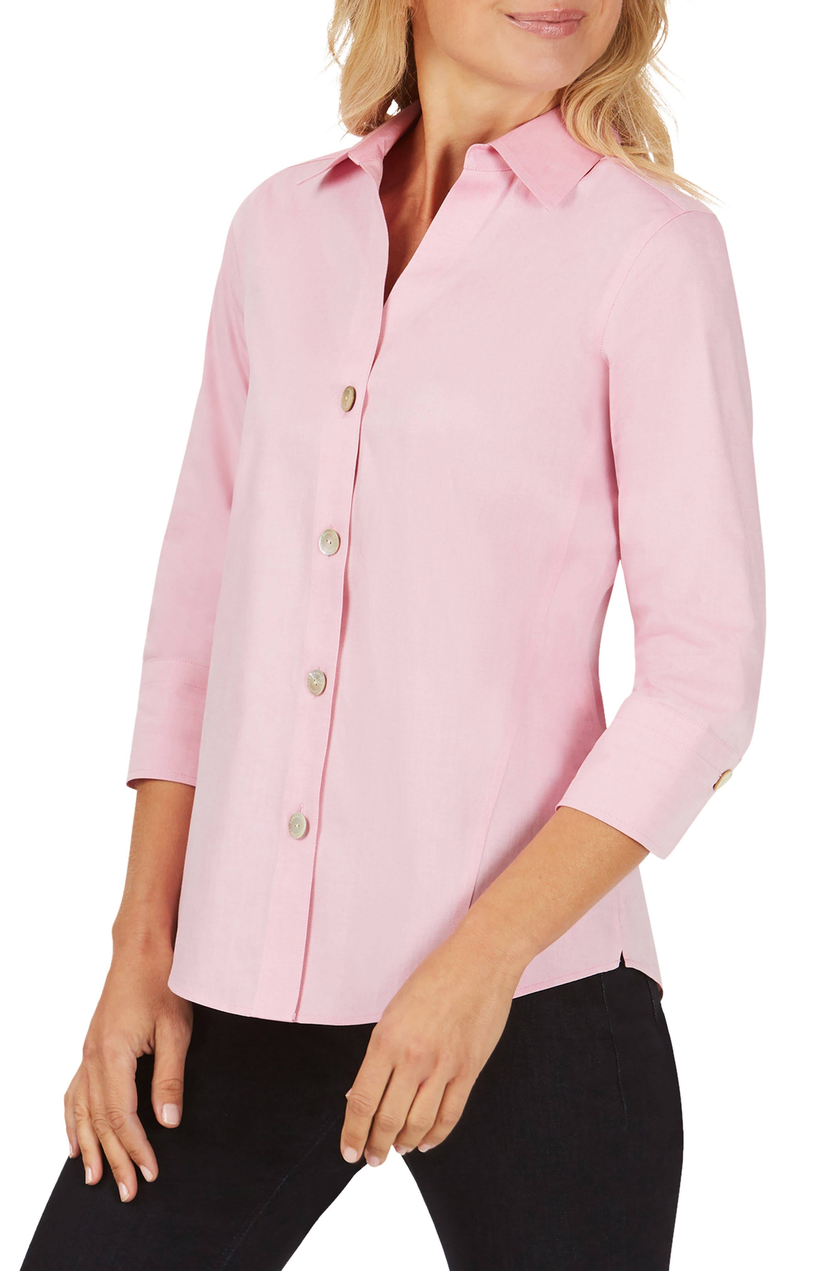 A wardrobe-staple shirt with three-quarter sleeves is tailored from crisp cotton that looks fresh and neat right out of the dryer. Style Name: Foxcroft Paityn Non-Iron Cotton Shirt (Regular & Petite). Style Number: 5800691.