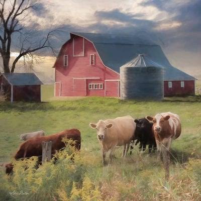Framed Canvas Art - Wyoming Sunset by Lori Deiter ( scenic u0026 landscapes u003E Country u003E Farms u003E barns art)