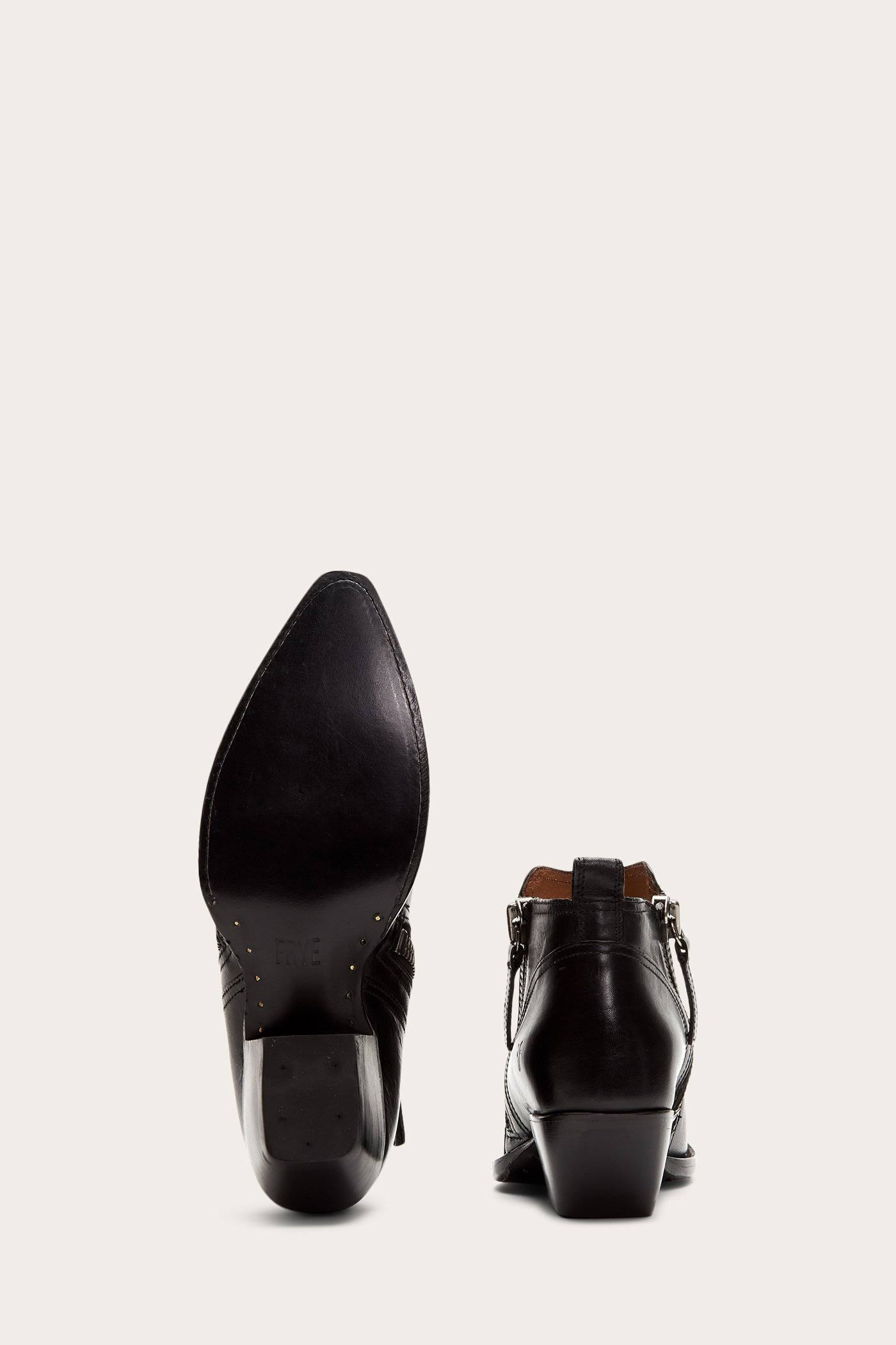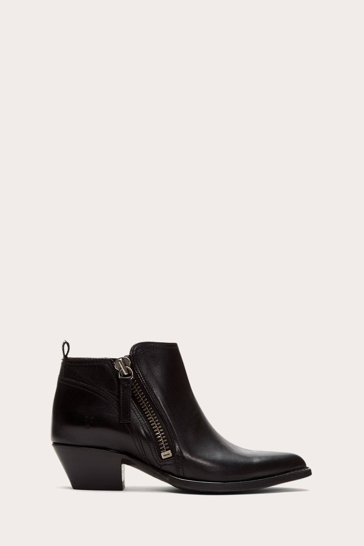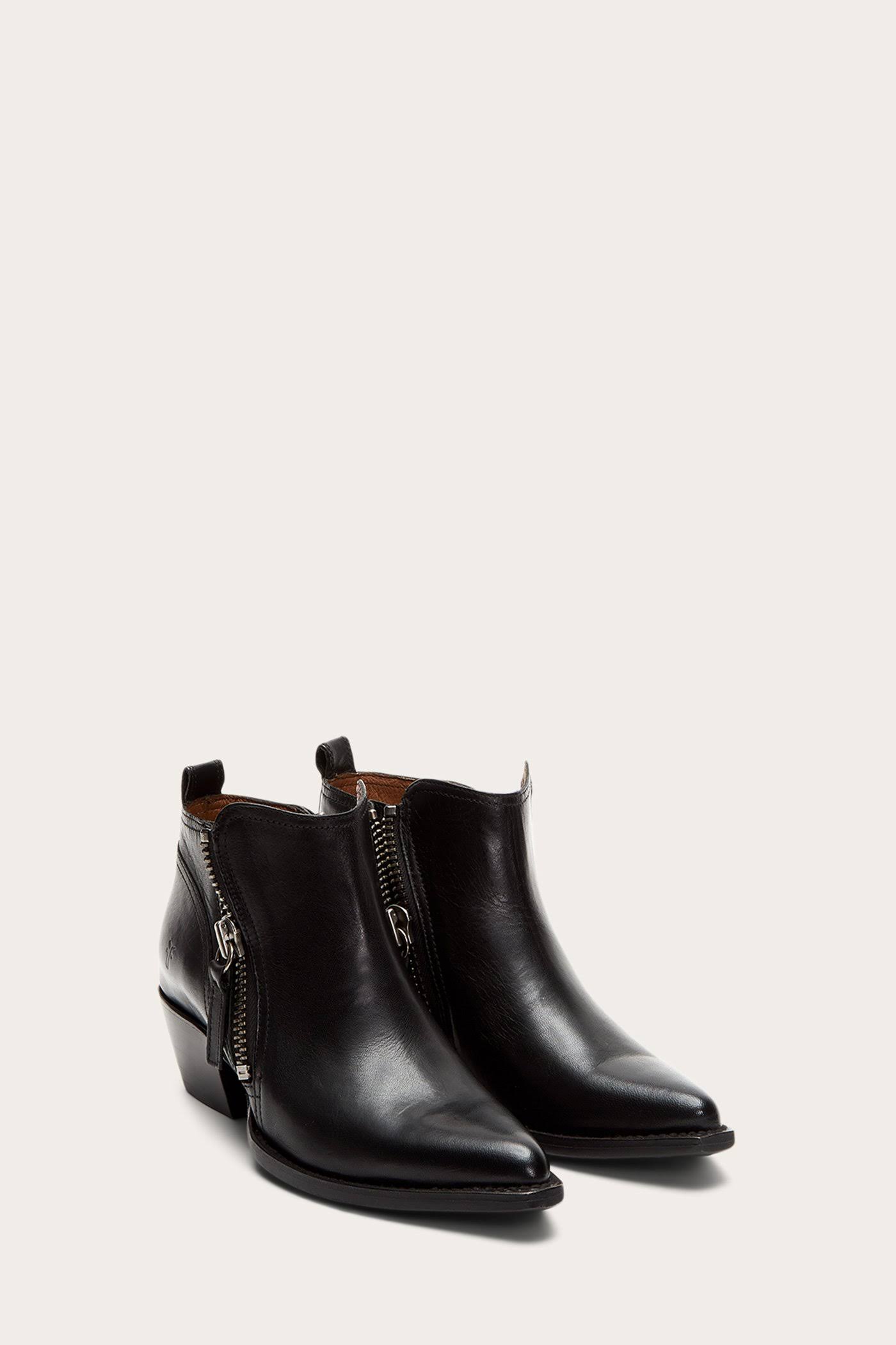 Bring Western-inspired style to a variety of looks with this pointy-toe bootie featuring a walkable stacked heel and dual side-zip closures for easy on and off. Style Name:Frye Sacha Moto Bootie (Women). Style Number: 6223445.