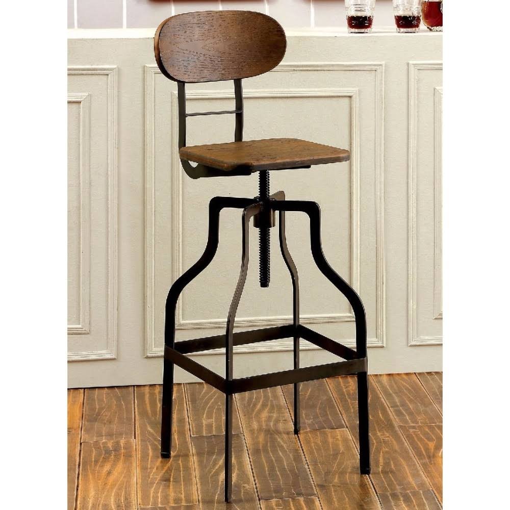 Part of leith collection Crafted with metal Height adjustable Wooden block Seat Available in oak or dark brown these industrial bar stool create an interesting and innovative design space that will truly have your guest talking.