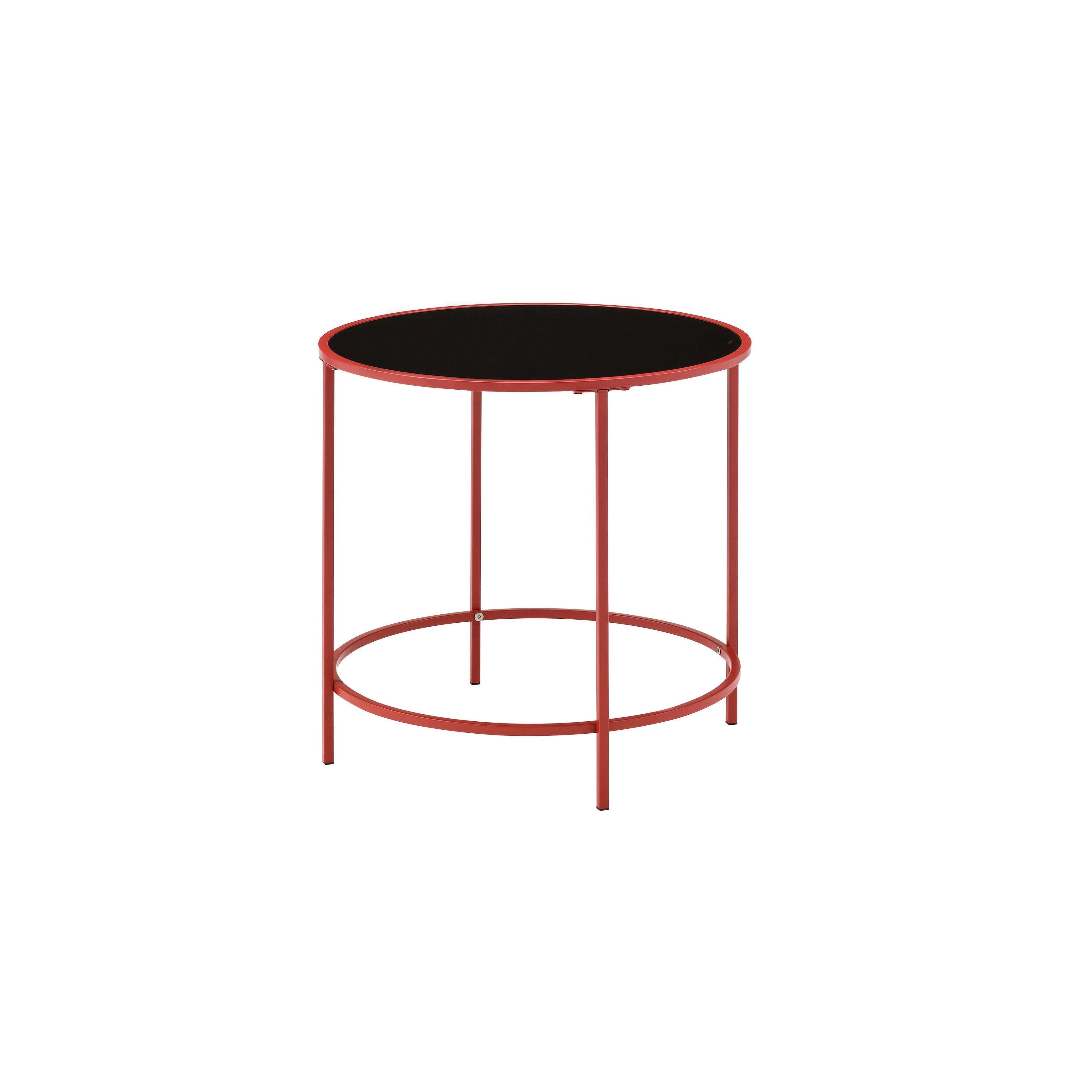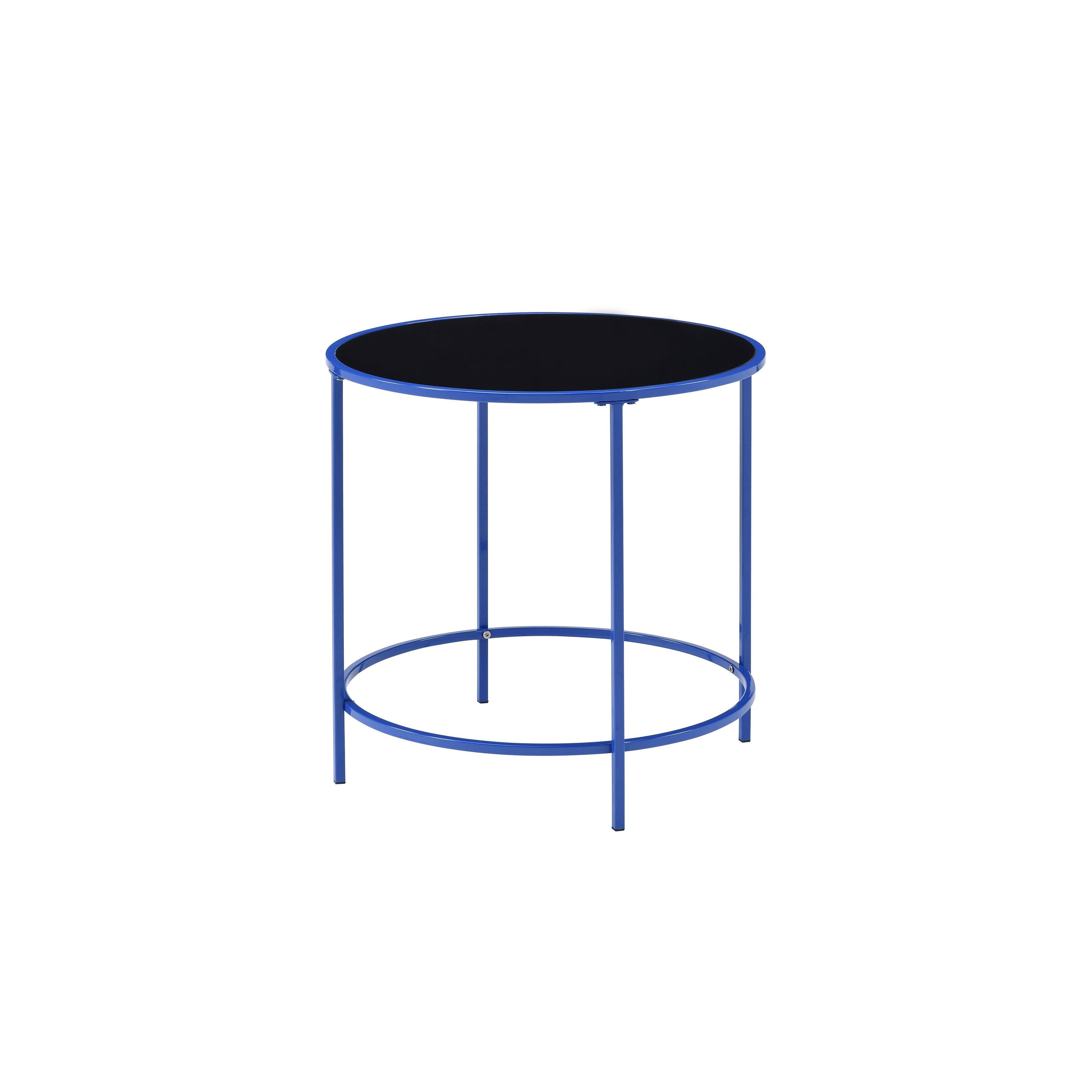 Unify a minimalist sitting area with the clean, classic silhouette of this contemporary glass side table. It boasts a round slab of black tempered glass that creates a touch of drama and sophistication in any space.