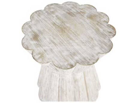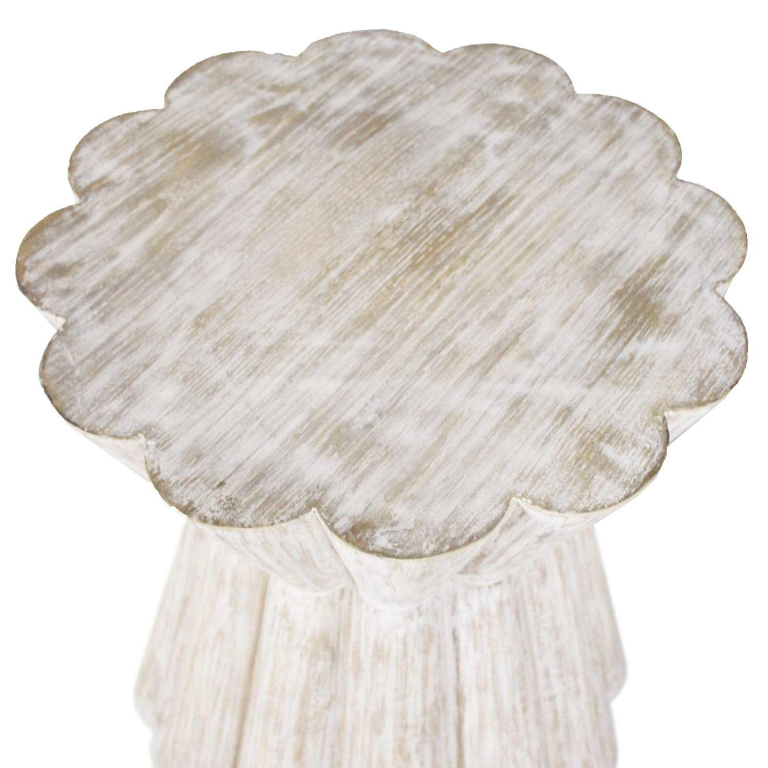 Beautifully enhanced with a whitewash finish, this scalloped side table offers a modern take on a classic farmhouse design. When topped with a cushion, this piece can also moonlight as a stylish stool.