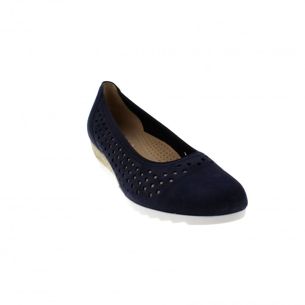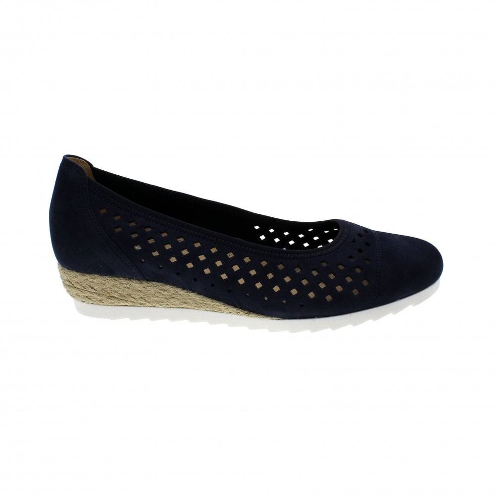 Evelyn is wedged pump with a 3.5 cm, hessian covered, rope heel and TPR sole with a zig-zag undersole. 22-624 comes in a useful Navy Blue (36) and a luscious Radiant Red (48); both uppers are a soft, velvety, Nubuck Leather that will mould to and move with your feet; these are a complimentary contrast to the White of the sole. Evelyn benefits from a Gabor Comfort, leather innersole that makes them cushioned and breathable; perfect for all-day wear. 22-624 spacious G-fitting allows plenty of room for your toes to spread out without restricting the natural movement of your feet when you walk. This is a pump all about bright, blossom-smelling Summer days. Upper: Nubuck (Leather) Lining: Leather & Textile Insole: Leather Sole: Thermoplastic rubber Heel: 3.5 cm Supplier Fit: G Fit: Standard