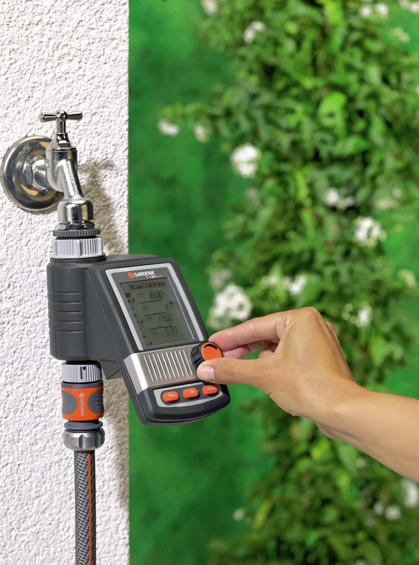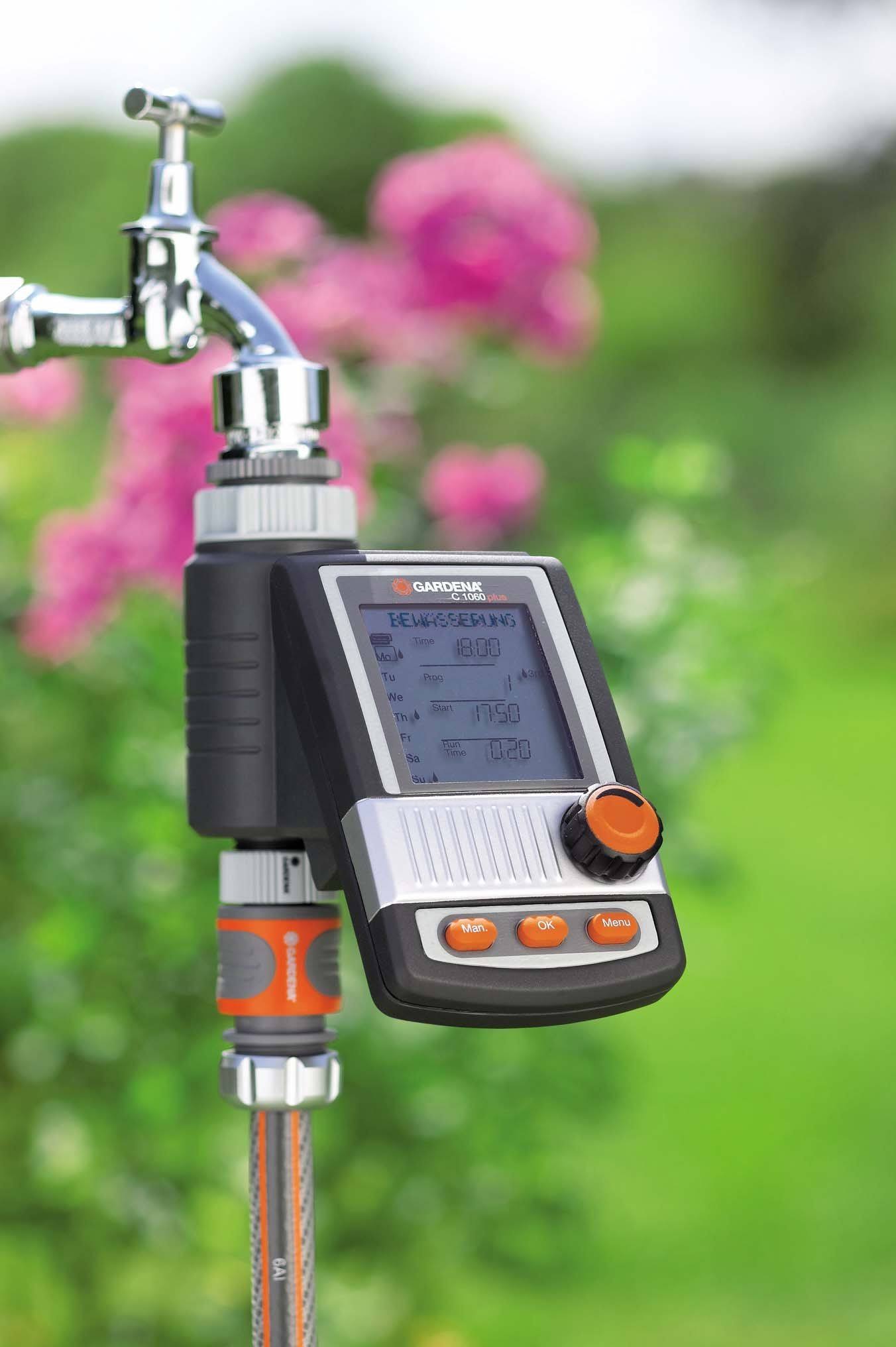 Automatic watering with Gardena watering computer Watering your lawn or vegetable garden becomes a lot easier when you choose a water timer. The advantage of a water timer is that the appliance regulates the watering of the garden at the times you have set. This means that you no longer have to operate the sprayer again and again and you can save time for other jobs in and around the house. Programmable water spray Because the Gardena MasterControl watering computer is easy to program, you can easily set the number of spray frequencies of the timer. On the large display, clear instructions explain which steps you need to follow. A maximum of six independent spraying programs can be selected per day, each lasting from one to a maximum of 599 minutes. Of course it is also possible to determine the spraying days yourself. This Gardena water timer works on a 9 volt alkaline battery. As soon as the battery is almost empty, the timer will indicate this on the display.
