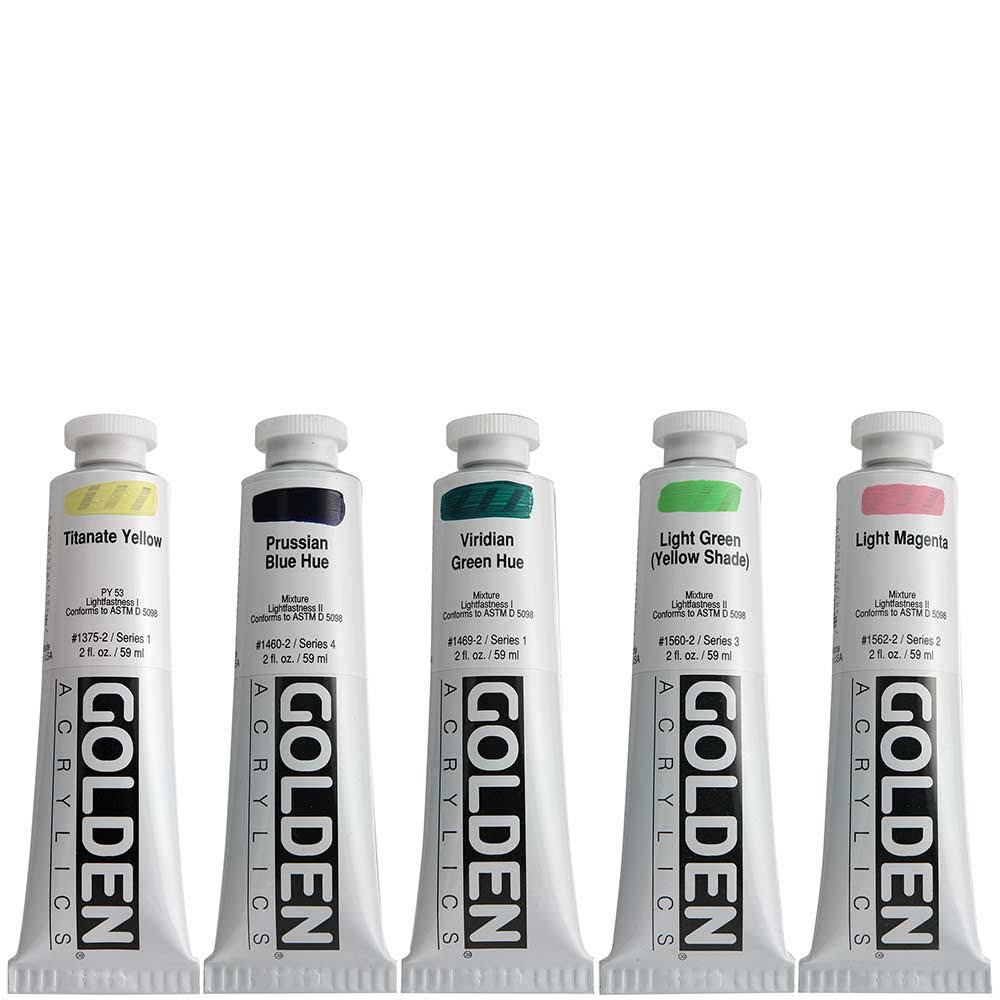 These 100% acrylic, smooth, thick colors are offered in a large assortment of unique pure pigments. There are no fillers, extenders, opacifiers, toners or dyes added. They render excellent permanency and lightfastness. Each color is formulated differently depending on the nature of the pigment. Colors that tolerate higher pigment loads dry to a more opaque, matte finish. Colors that are more reactive and do not accept high pigment loading dry to a glossy finish and tend to be more transparent.