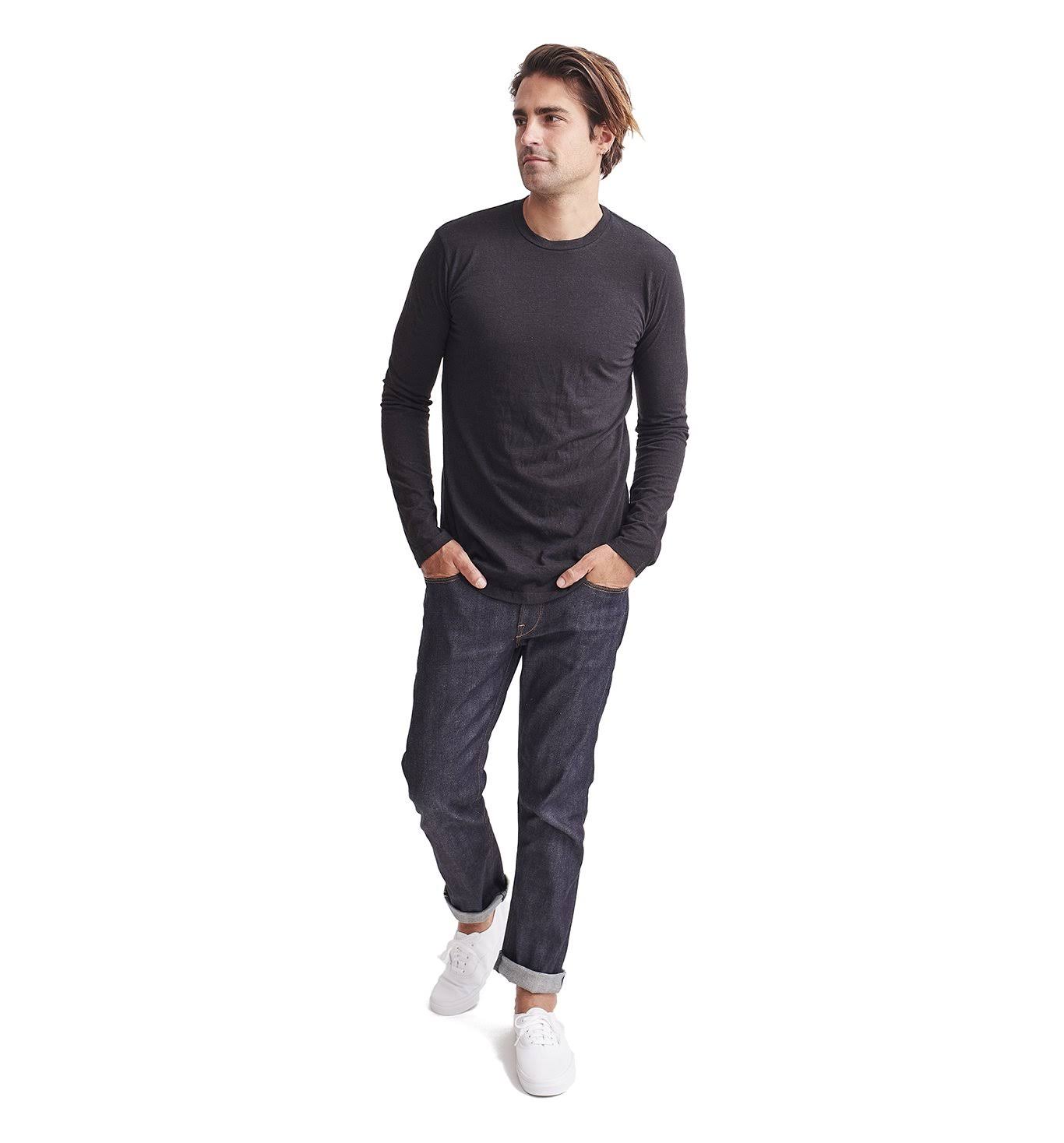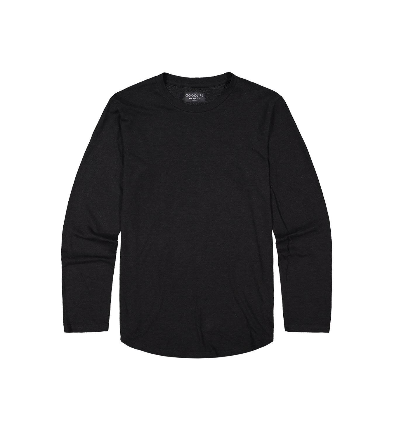 By overdying our heather grey tri-blend, a slightly heavier tri-blend hand is created producing rich Holiday hues. Available in a l/s crew neck with our signature scallop hem made from our most durable jersey. The blend of poly, cotton and rayon yarns give it its high-low color profile while always retaining its shape, wash after wash. Finished with contrast shoulder stitching.