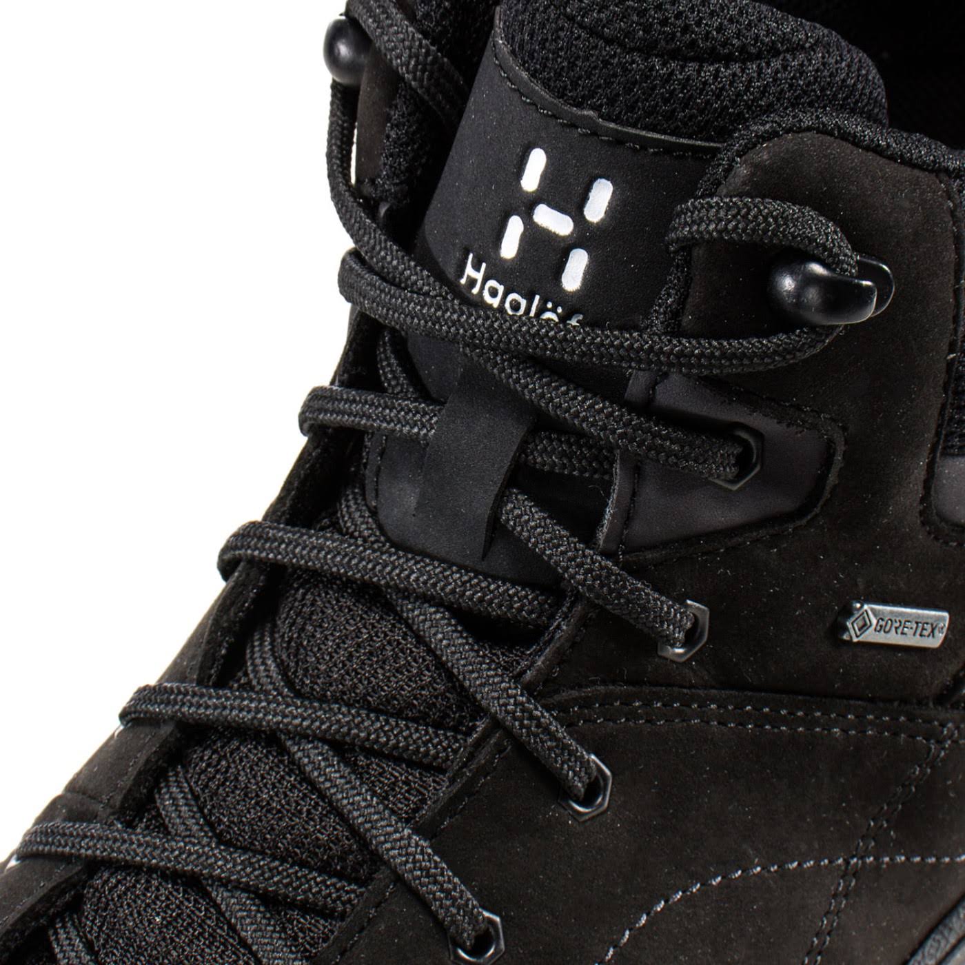 Hagl枚fs Ridge Mid Gt Walking boots (11, black) - Exceptional traction on any surface - the Hagl枚fs Ridge Mid GT are very sturdy walking boots. Not only do they provide reliable traction, the shoes are built to stabilise the ankle as well. The nubuck leather upper is equipped with a PFC-free DWR finish, making it durably water repellent. Plus, the Gore-Tex Extended Comfort membrane will shield your foot from blustery winds and bad weather as well. The comfy midsole made of Spevefoam and gel is guaranteed to provide optimal cushioning and shock absorption. For protection rocks and debris, the boot comes equipped with a protective toe cap as well. The Hagl枚fs Ridge Mid GT are perfect for any weather.