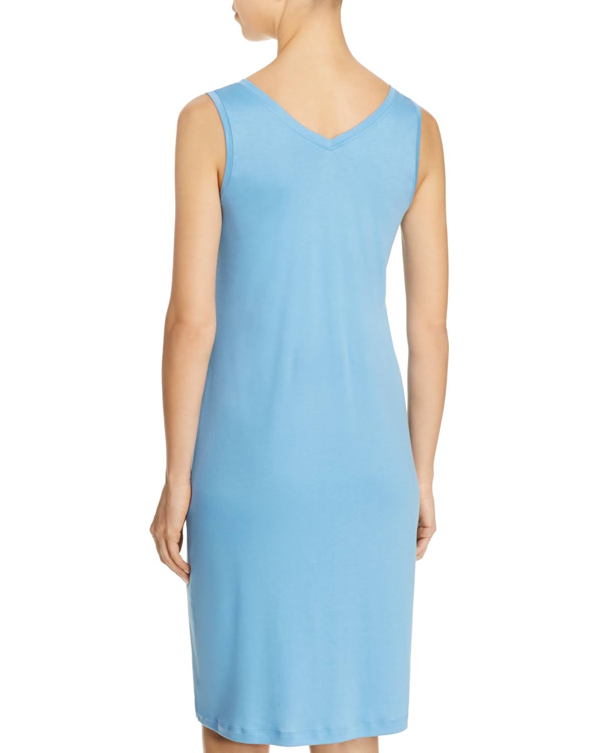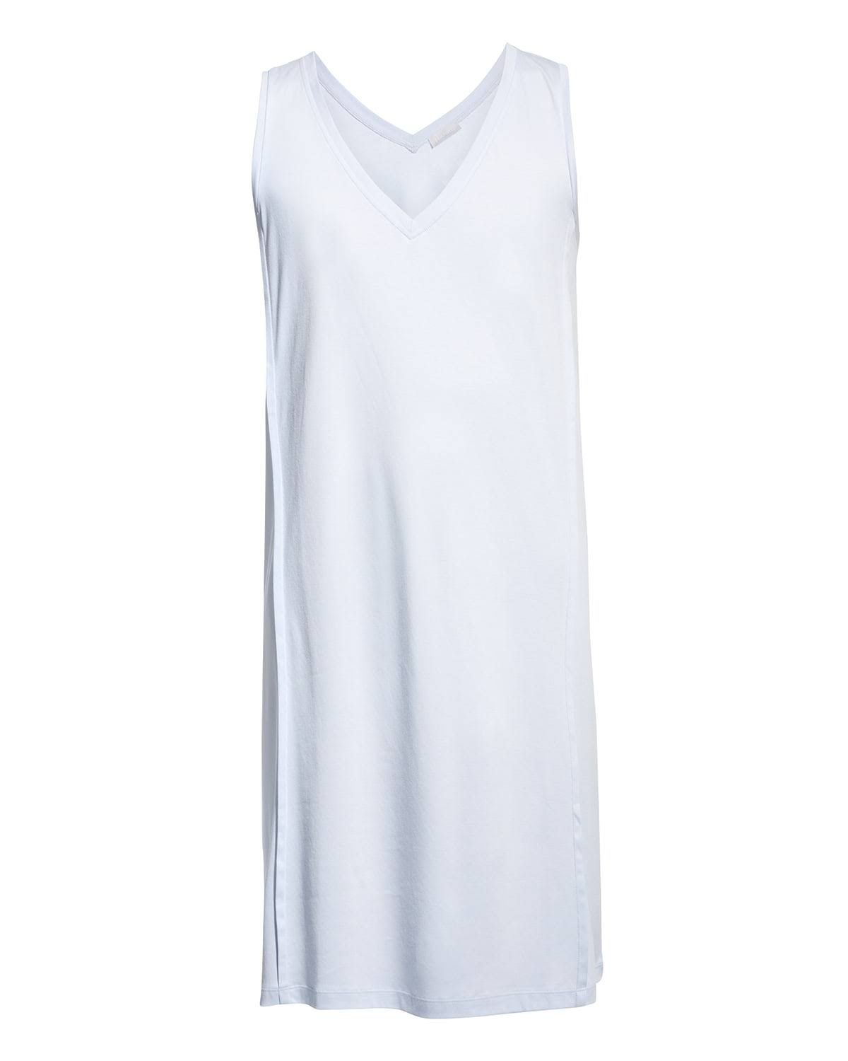Luxurious sleeveless tank style blue nightdress, made from soft mercerized cotton. V shaped neckline. 100% Cotton Machine Wash - Warm (> 30) Sleeveless 77946 Falls to thigh height. Buy today. Luxurious sleeveless tank style blue nightdress, made from soft mercerized cotton. V shaped neckline. Falls to thigh height. Buy today.