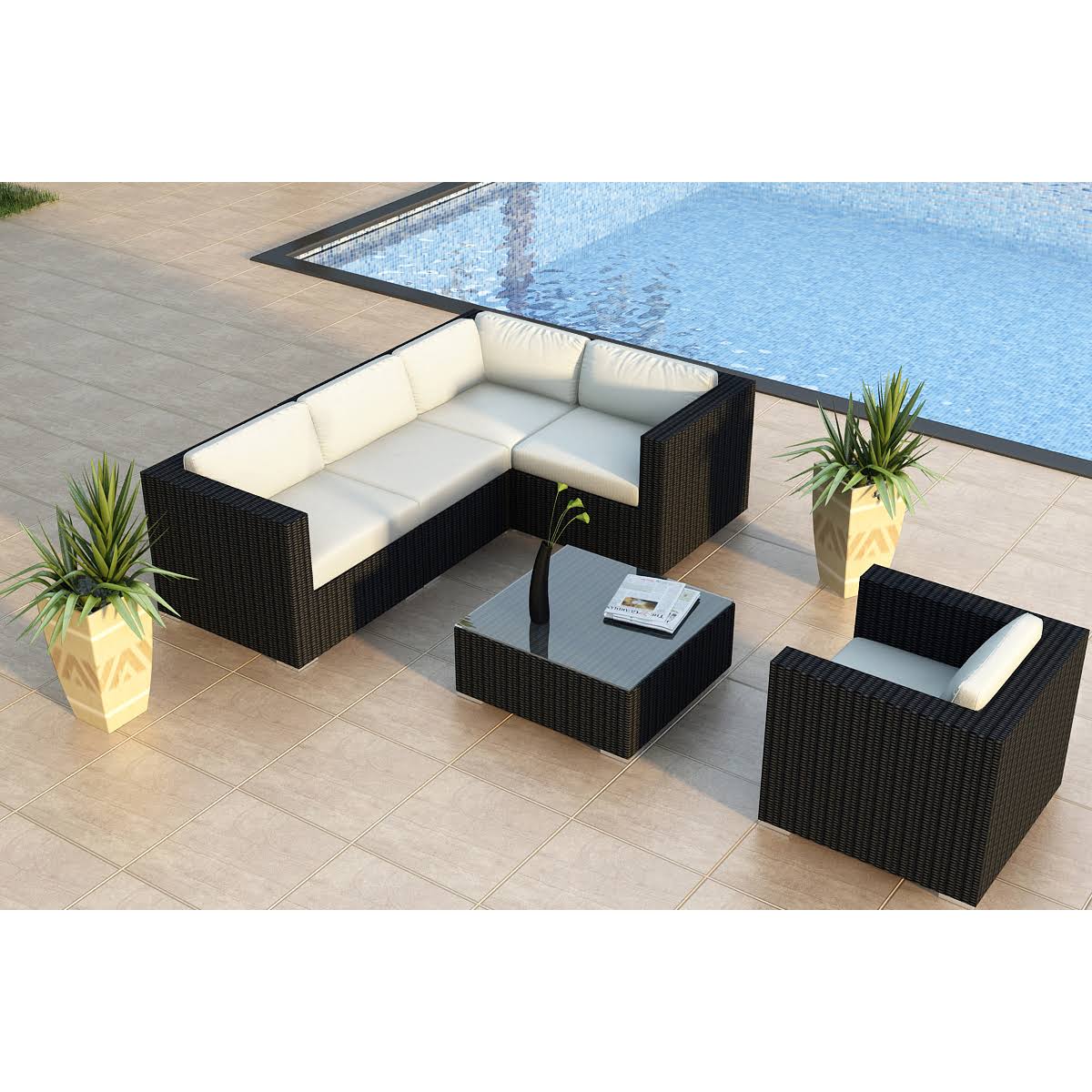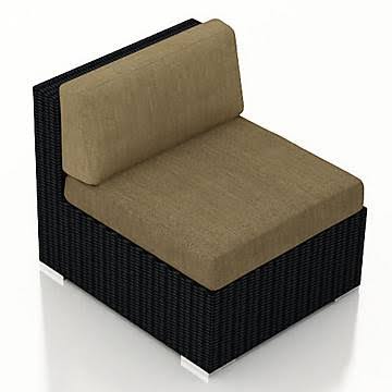 The Urbana Middle Section by Harmonia Living is the perfect piece for expanding your own stylish Urbana Sectional. The chair includes comfortable cushions covered in Sunbrella fabric, the industry leader in mildew- and fade-resistant outdoor fabrics. Each strand of the pieces High-Density Polyethylene (HDPE) wicker is infused with a rich Coffee Bean color and UV protection, giving it long-lasting color despite the elements. The seat is triple reinforced for lasting durability. Each piece also features a thick-gauged aluminum frame that is corrosion resistant, giving this piece fantastic structural integrity. Underneath the brushed aluminum feet are plastic glides, allowing you to conveniently rearrange the set freely without worrying about scuffing your patio or deck. Designed to be used with other elements from the Urbana Collection. High-Density Polyethylene (HDPE) Recyclable All Weather Wicker! UV inhibitors prevent fading and crack in the sun. Each strand is lightly textured and features a subtle mix of color to create a natural look you and your guests will love. Choice of Sunbrella Cushions - Made in the USA! Cushion ties that keep cushions in place. Sunbrella fabric is easily spot cleaned, the covers also have a zipper for easy removal. Padding is made from quick dry polyurethane foam, wrapped in Dacron that wicks away moisture to eliminate mildew. Thick gauge aluminum frames with powder coated paint finish. Triple reinforced seat frame for lasting durability. Brushed aluminum feet with plastic guides to protect patio surface. No assembly required.