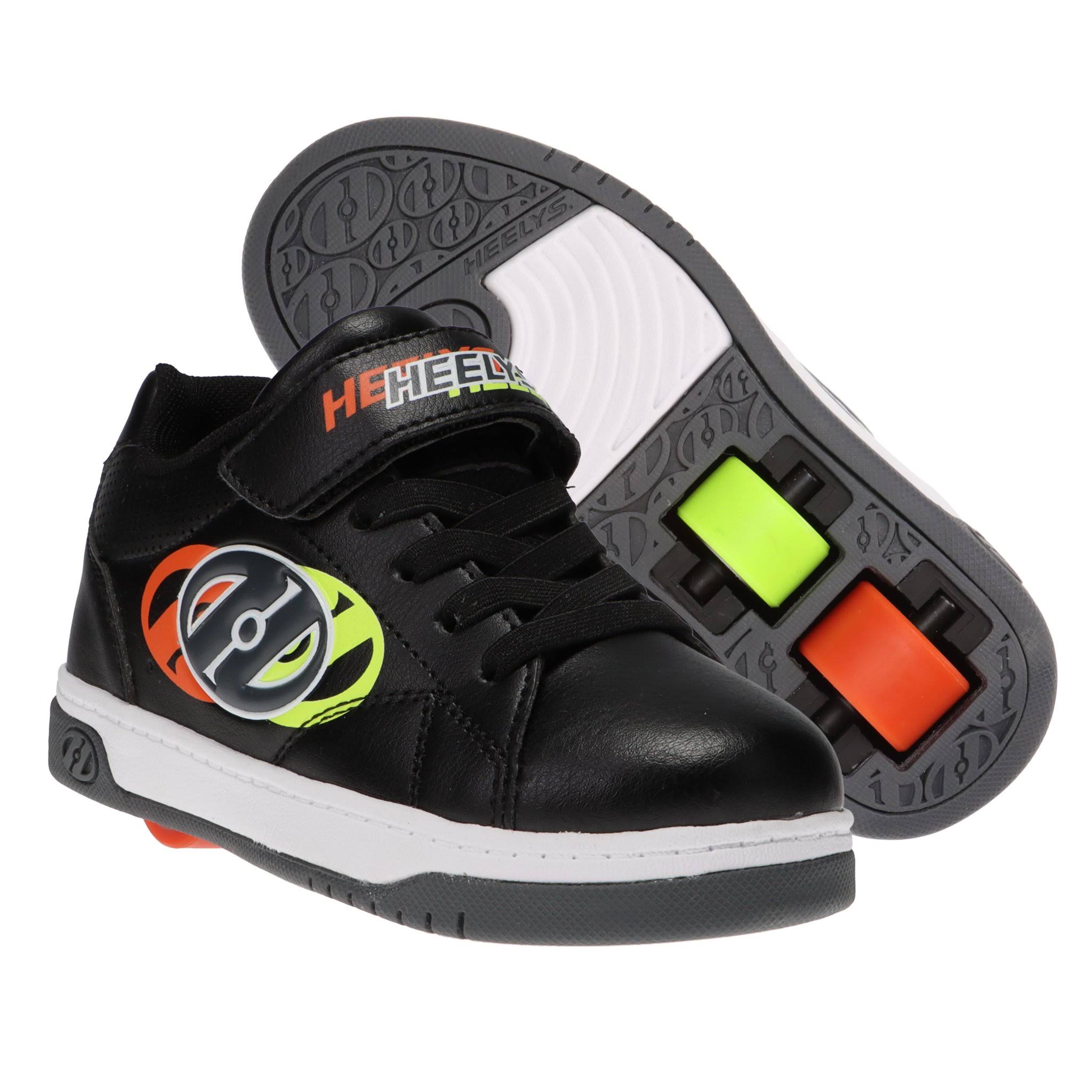 Heelys Swerve X2 Shoes (HE100772K) have 2-Wheels on each shoe, making it easier for young ones to learn how to Heely. If/when ready, remove the front wheel and roll with one! Dual density outsole increases durability. Synthetic nubuck uppers are flexible, and combined with a velcro powerstrap and laces, provide comfort with no lace bite.