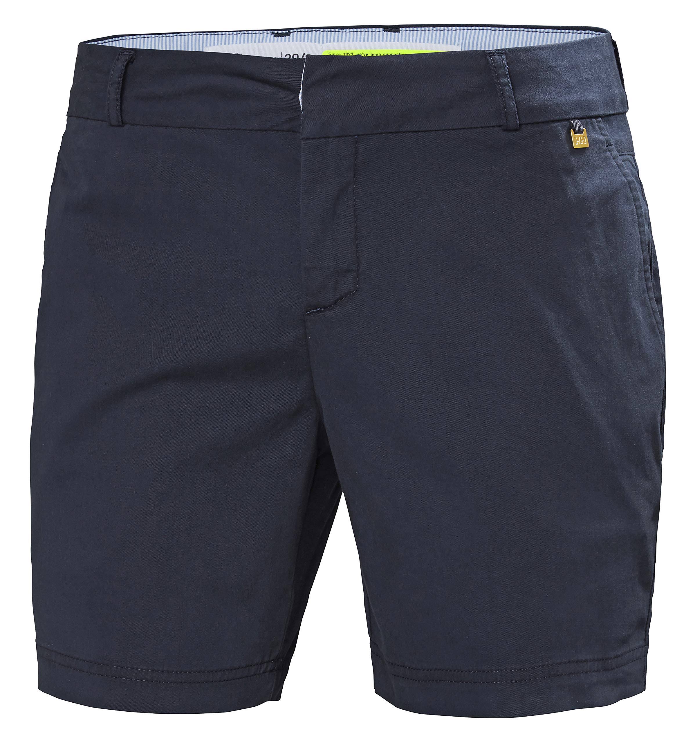 Button closure Soft cotton stretch fabric, 170g/m2 Zipped front fly with HH button top closure Slant hip pockets Back welt pocket Double belt loops Our classic Helly Hansen cotton stretch shorts for women. Featuring slanted hand pockets, welt pocket at back and belt loops. These are stylish and comfortable shorts for warm summer days.