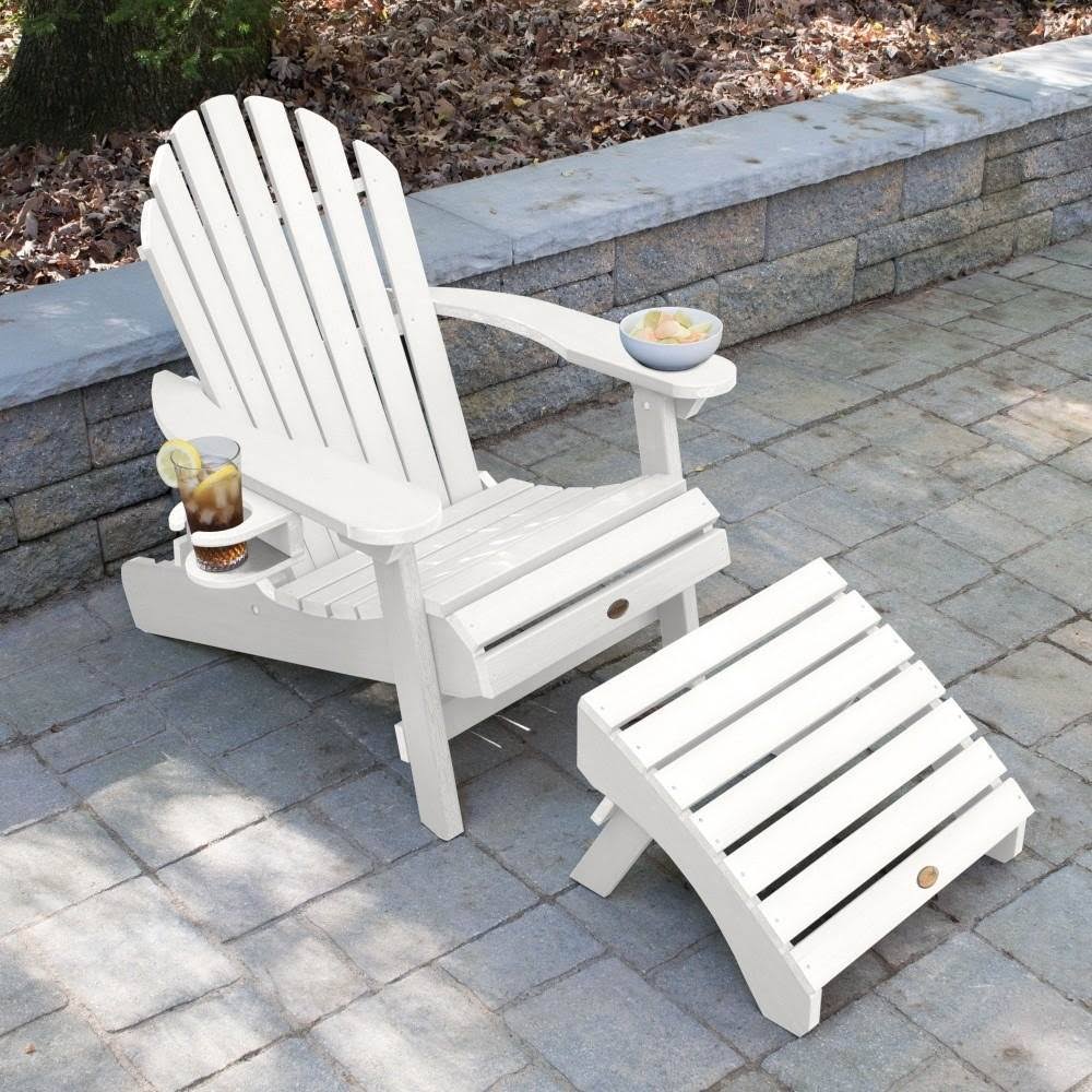 Highwood AD-KITCHL5-WHE Hamilton Folding/Reclining Adirondack Chair with Ottoman and Cup Holder, White
