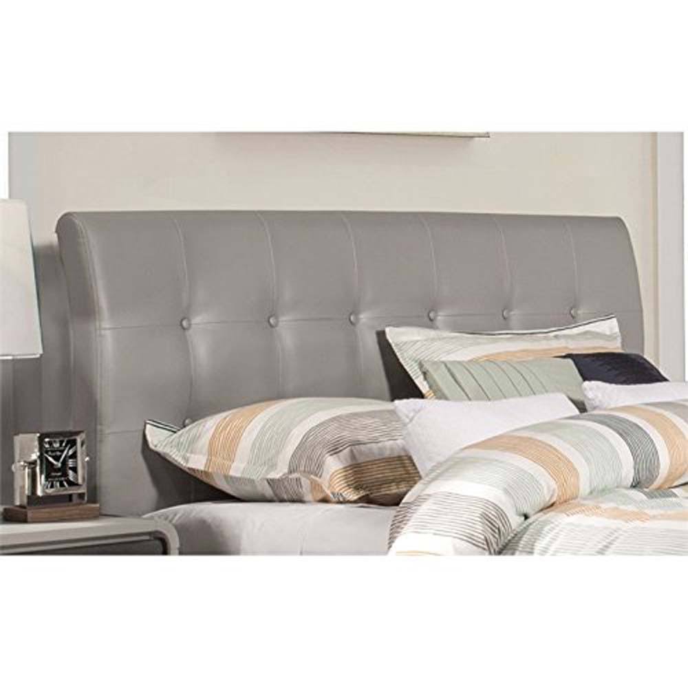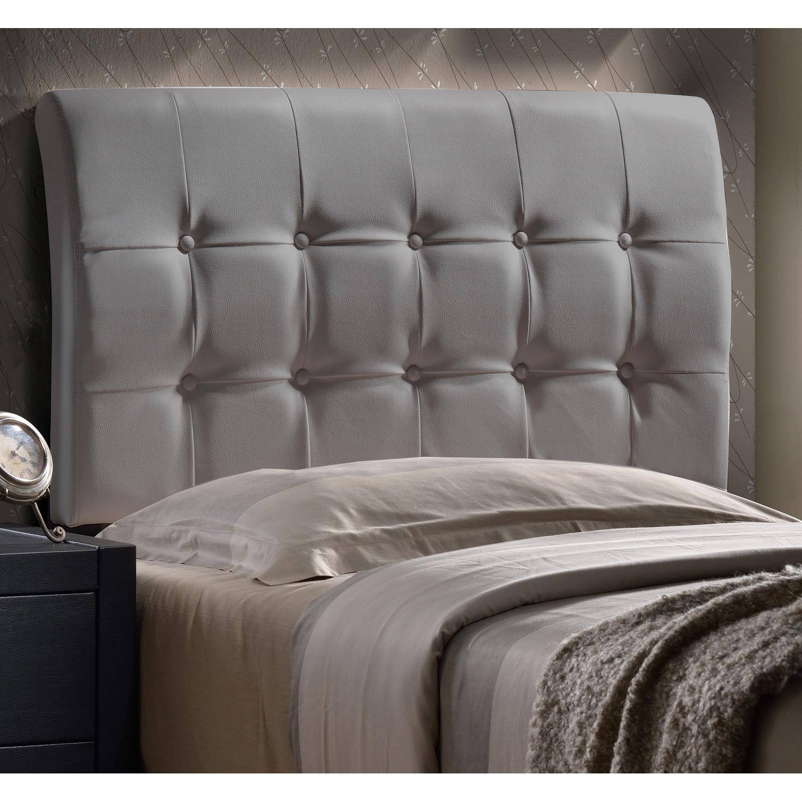 Modern and streamlined, the Lusso Headboard brings together straightforward shape and sleek textures. The Lusso s tufted, rectangular headboard has a gray faux leather. Available in twin, full, queen and king sizes. Requires a mattress and box spring. Some assembly required.
