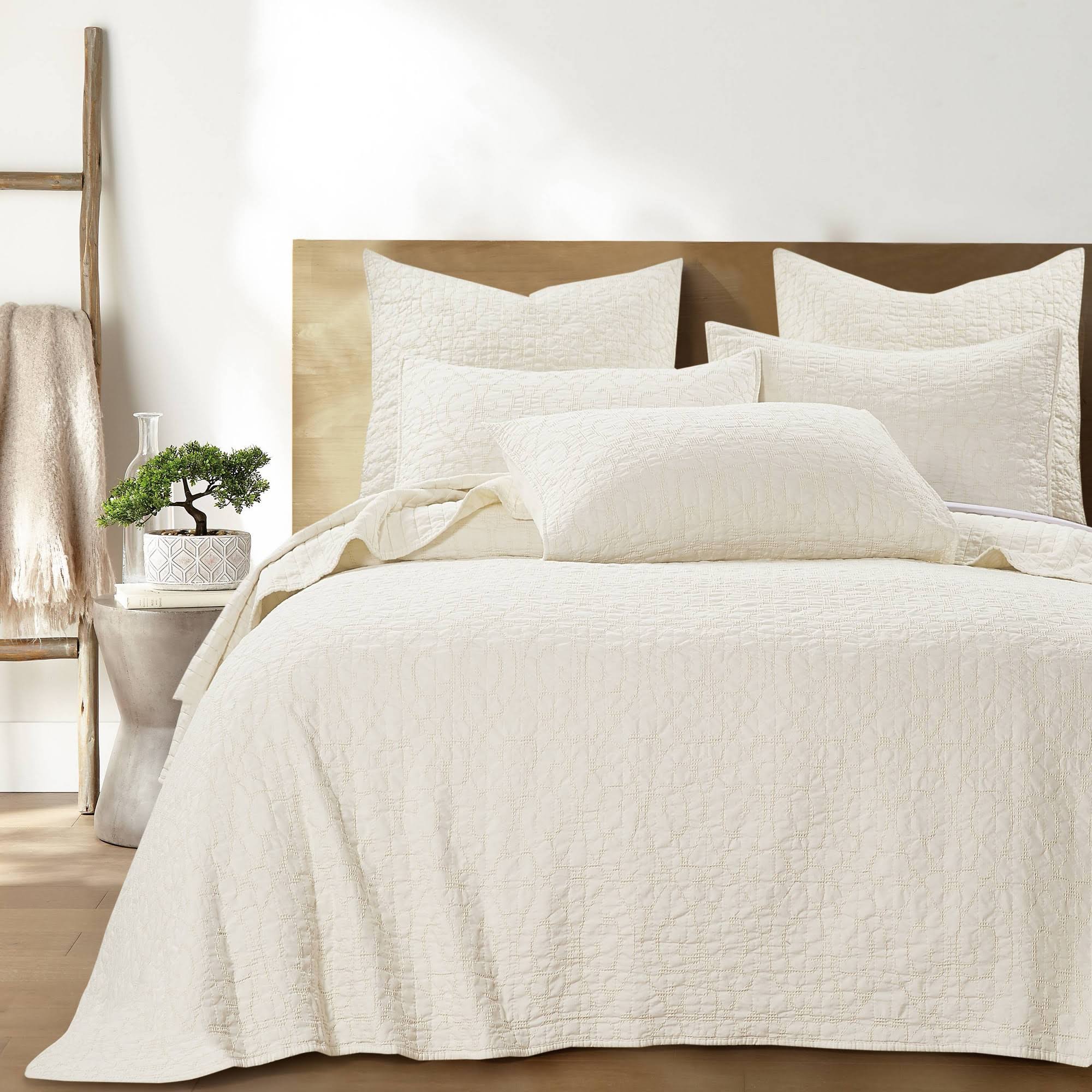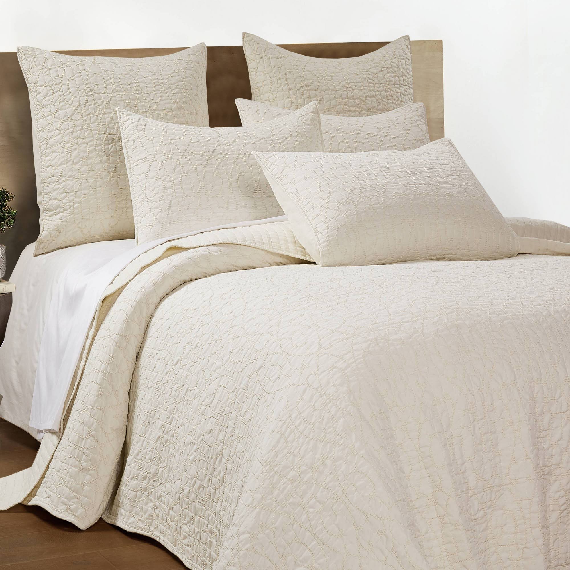 The Marta Queen quilted bedspread set by Homthreads is inspired by traditional jacquards. Offered in this perfect shade of Cream, this design will immediately transform your bedroom. Made with the softest lightweight pre-washed microfiber, this bedspread is made from a microfiber damask scroll on the one side, reversing to a solid microfiber in the same color on the other. The Queen Bedspread Set is machine washable and includes the bedspread (102 x 118 in.) and one standard pillow sham (26 x 20 in.) Enjoy this for years to come!