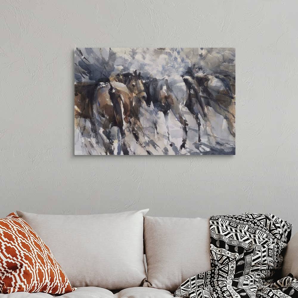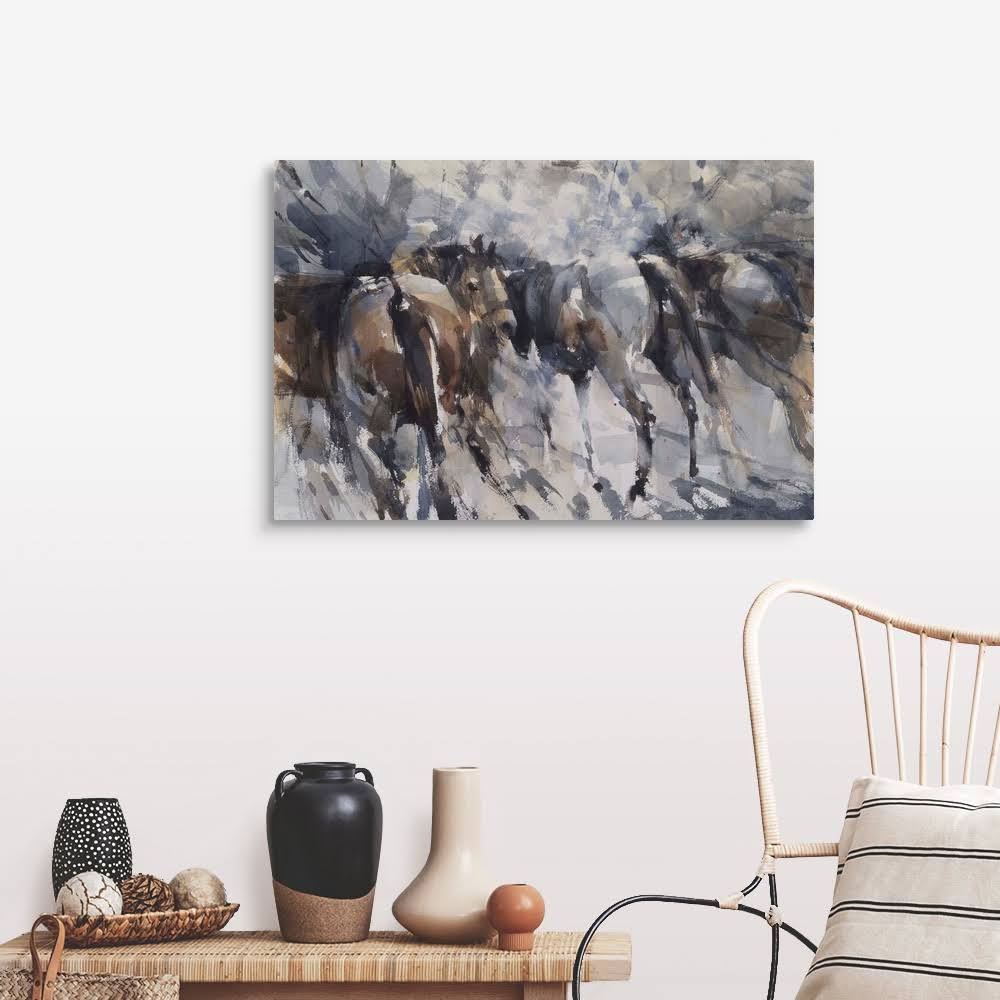 36x24 Canvas Wall Art titled Horses 1. With a vast assortment of content spanning both art and photography, endless possibilities are available to curate the right collection for your unique space. Featuring a contemporary and modern design, our canvases are a perfect fit for any space in your home: living room, bedroom, kitchen, office, dining room, game room, bar, and more! They also make wonderful gifts for family or friends.