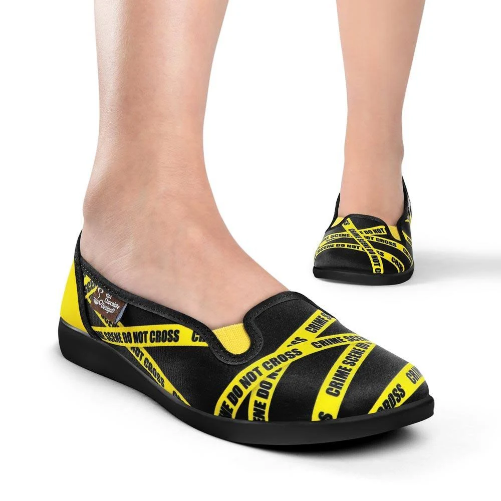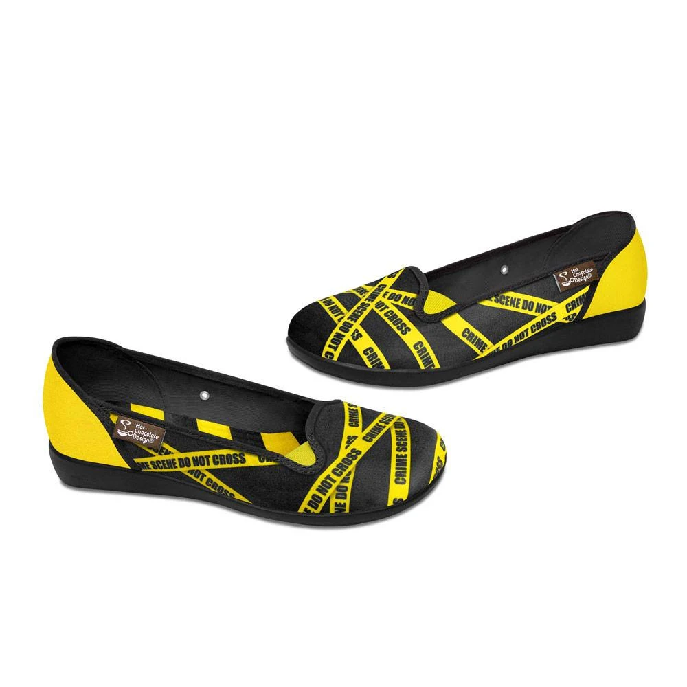 Printed fabric upper: yellow crime scene tape on top of black Soft fabric inner: black and yellow awning stripe pattern Cushioned inner sole for maximum comfort Non-marking rubber sole Elastic goring band for easy on and off Proudly vegan Check our size chart to get a perfect fit Collect them all! Slide into the comfort of our mismatched slip-on shoes! Our vegan friendly footwear brings you the nostalgia and coziness of childhood wrapped in the vintage designs you remember. Cute and funky slip-on flats because you ?re different and unique. Wear your heart on your shoes and celebrate your individuality with a fun pair of Chocolaticas Slip-Ons!