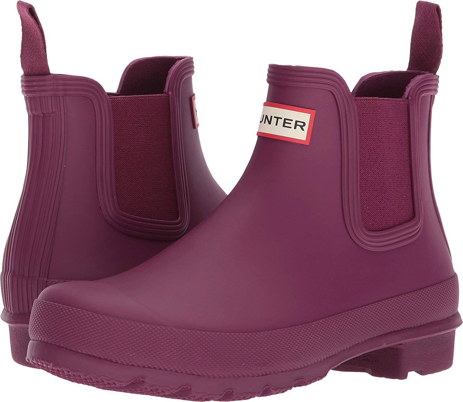 The Hunter Original Chelsea Boot is handcrafted from natural rubber and vulcanized for superior protection. It features elasticated gussets and a nylon pull tab make for easy wear. These waterproof boots have polyester lining and rubber outsole with the Hunter Original tread pattern that provides grip on most surfaces. With a classic matt finish, these ankle boots are a wet weather wardrobe essential.