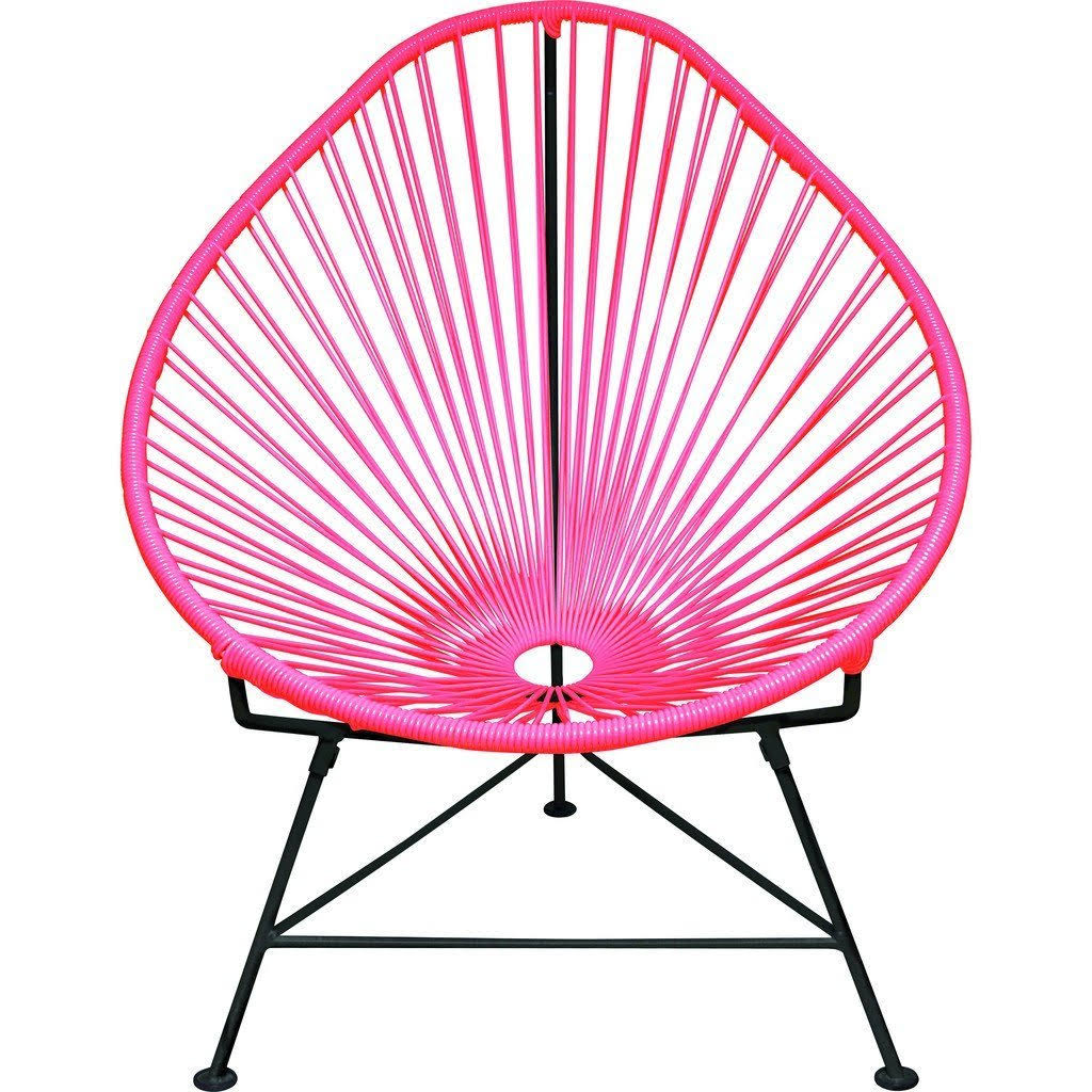 The Baby Acapulco Chair-Suitable for indoors and out. Composed of a metal base and seat woven with vinyl cord. The Baby is surprisingly comfortable without a cushion for adults and children. This miniature version of our famous Acapulco Chair is great for the backyard, for trips to the park or to stylishly outfit smaller rooms. The galvanized steel resists rust and the very durable yet flexible, UV protected vinyl will stay colorfast for years. It's weatherproof, breathable, easy to clean, and available in everybody's favorite color. A great, modern design for commercial and residential applications. Pretty good innit.