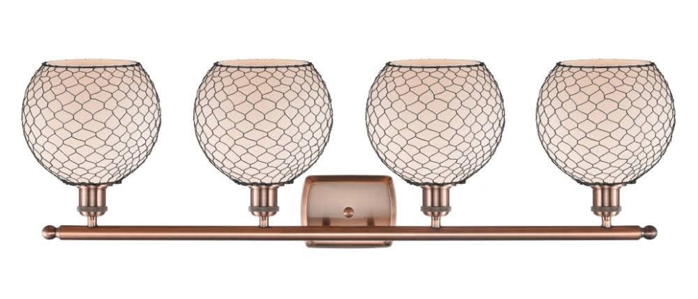 This 4 light Bath Vanity Light from the Farmhouse Chicken Wire collection by Innovations Lighting will enhance your home with a perfect mix of form and function. The features include a Satin Nickel finish applied by experts.