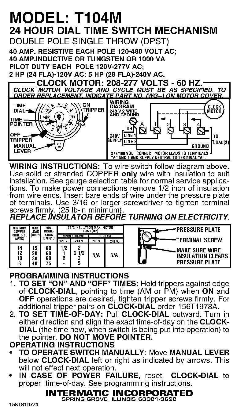 Intermatic T104M Mechanical Time Switch Mechanism Only