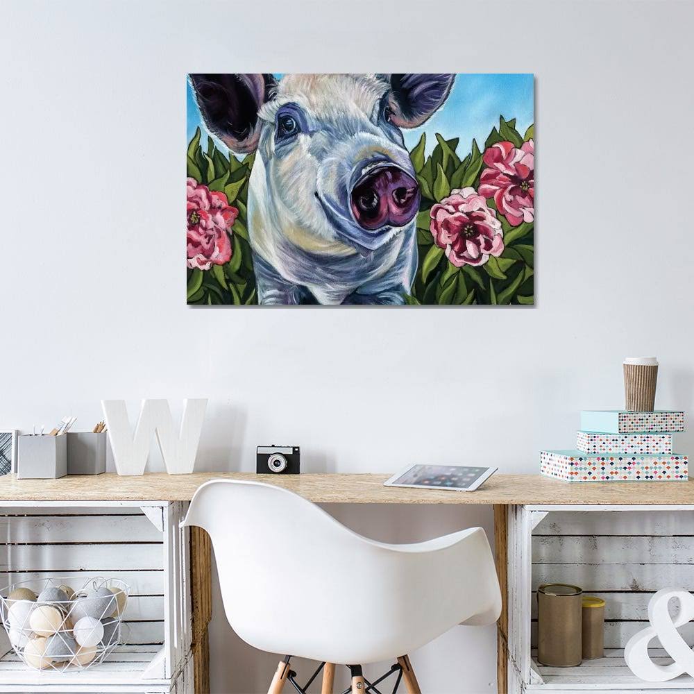 Kathryn Wronski Canvas Prints - Pigs and Peonies ( Animal Art u003E Farm Animals u003E Pigs art)
