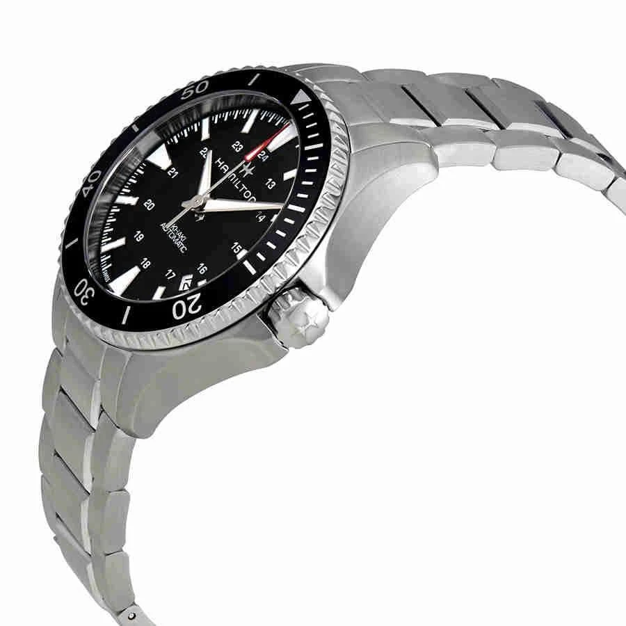 The beautiful Hamilton H82335131 watch features a stainless steel 40mm case, with a uni-directional rotating bezel, and a black dial covered by a scratch resistant sapphire crystal. The stylish wristwatch is equipped with an exclusive 20mm stainless steel which combines comfort and sturdiness. This horological trendy device has date, hour, minute, second functions. At the heart of this timepiece is Hamilton Calibre H-10. The Automatic movement operates at 21600 A/h and keeps the hands revolving smoothly and accurately for precise, reliable timekeeping. It contains 25 Jewels, and picks up all the advantages of this high-performance 榚nginegid including an 80-hour power reserve. This magnificent watch has a water resistance of up to 330 feet/100 meters, suitable for recreational surfing, swimming, snorkeling, sailing and water sports. This elegant Swiss-made masterpiece is sure to complete any man's collection.