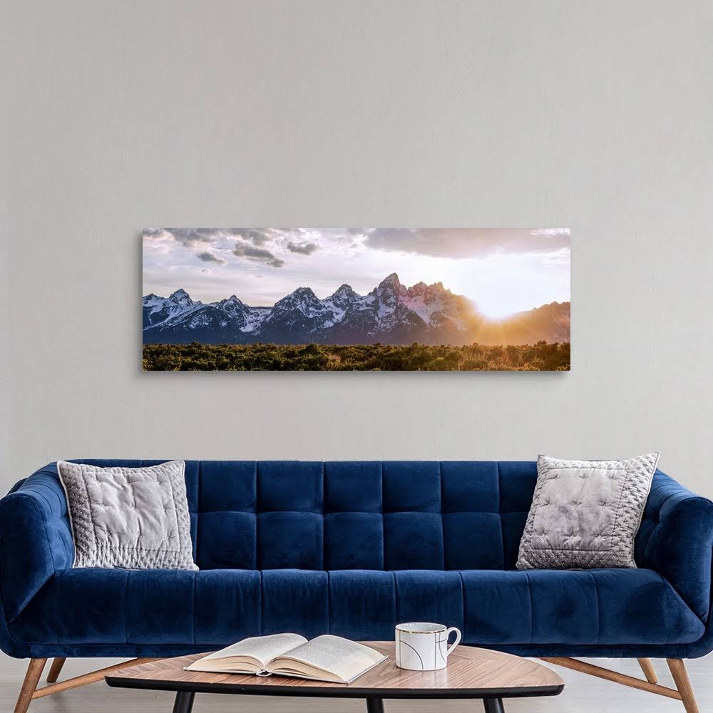 Panoramic Sunrise Over Teton Range, Grand Teton National Park, Wyoming | Canvas Wall Art | 60x20 | Great Big Canvas