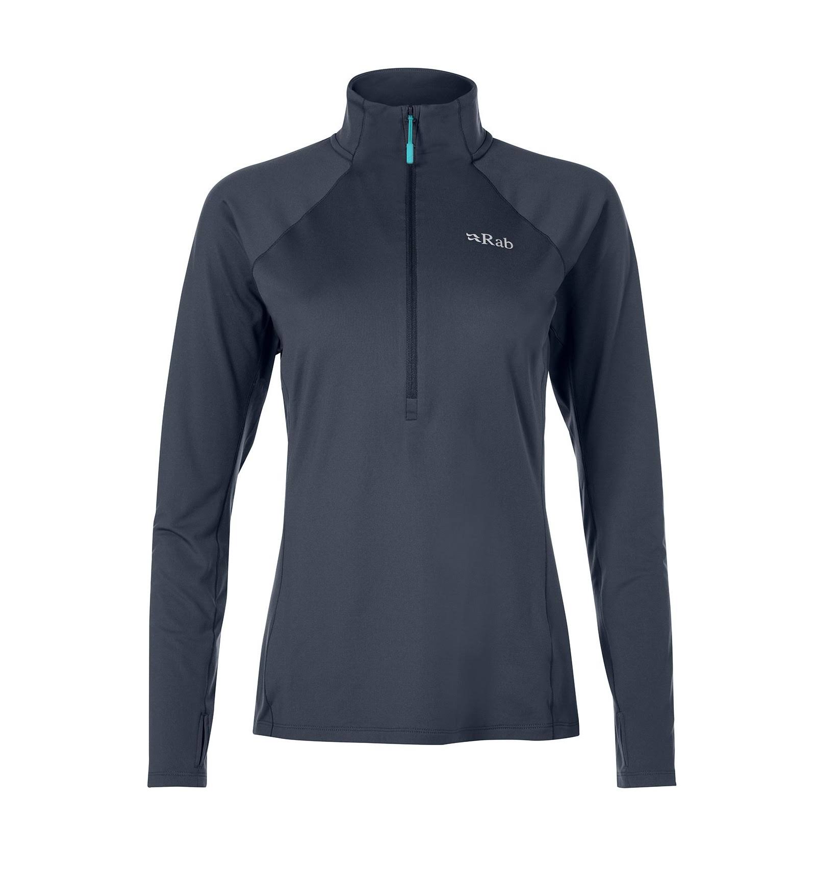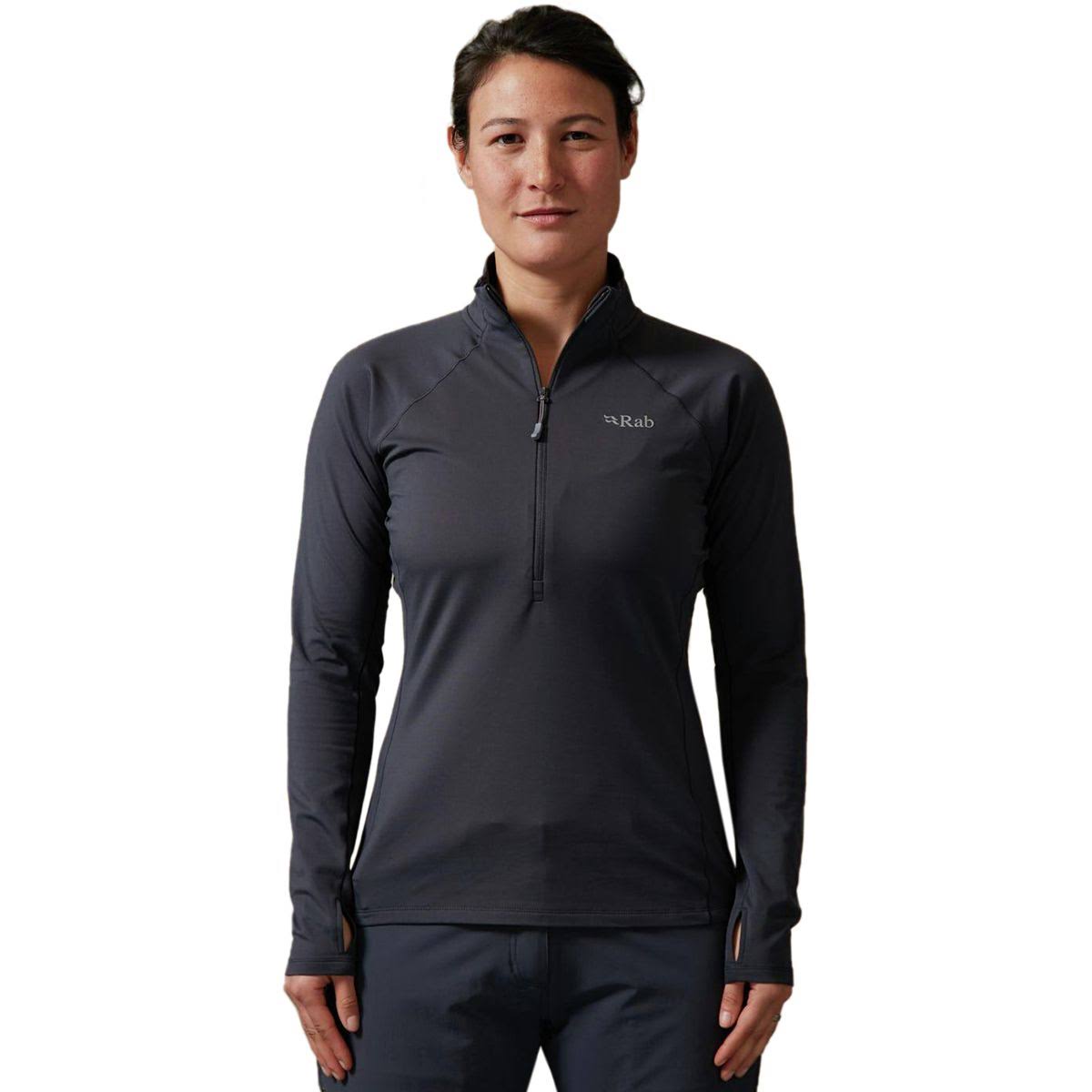 The Rab Flux Pull-On Top is ideal for multi day climbs or long treks through the mountains. With a Polygiene odor control treatment, you'll stay fresh naturally as you climb or hike. The midweight material keeps you comfortable in colder, high alpine temperatures and the thumbholes secure the sleeves when you need to throw on more layers. Merrow Activeseam stitching offers strong, low profile seams that won't chafe as you pole plant mile after mile. For quick thermal control, unzip the front zipper to dump excess heat on burly climbs or zip it up when the wind kicks in and the chin guard will protect your skin from abrasion.
