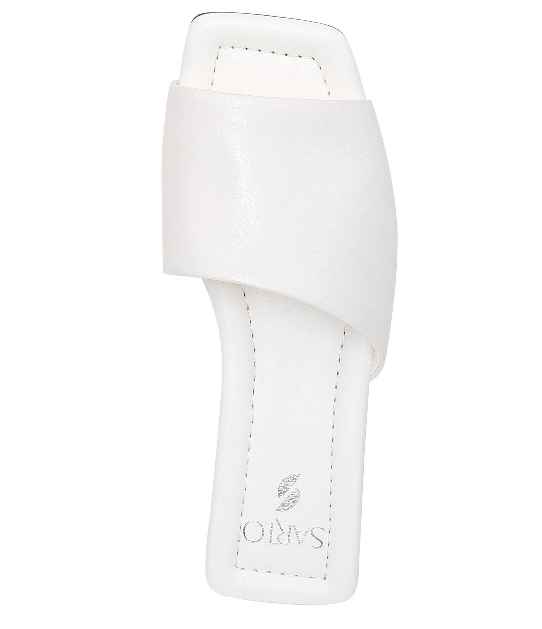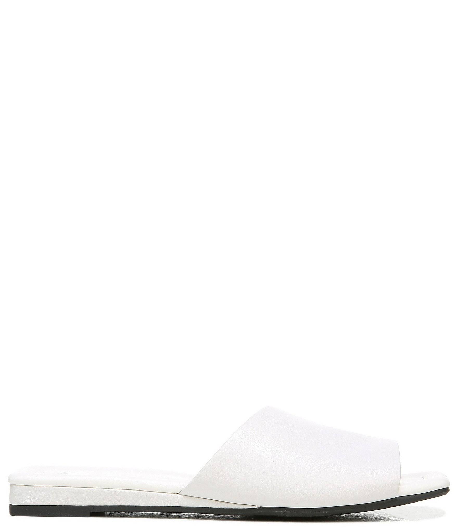 A classic slide sandal crafted with eco conscious materials is given a trendy update with an open toe and a wide leather strap for the perfect fit.