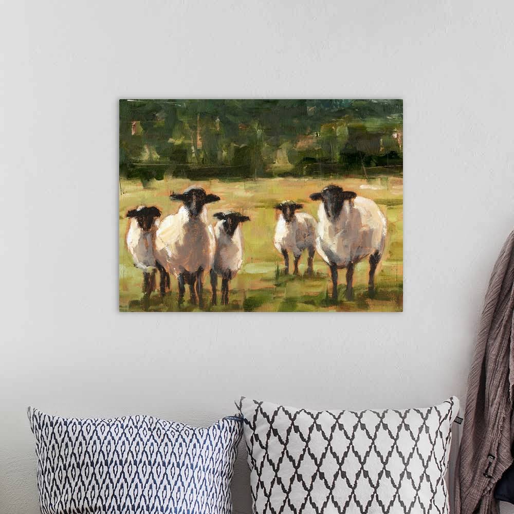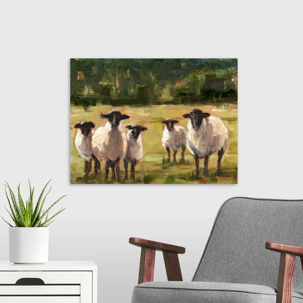 24x18 Canvas Wall Art titled Sheep Family I. With a vast assortment of content spanning both art and photography, endless possibilities are available to curate the right collection for your unique space. Featuring a contemporary and modern design, our canvases are a perfect fit for any space in your home: living room, bedroom, kitchen, office, dining room, game room, bar, and more! They also make wonderful gifts for family or friends.
