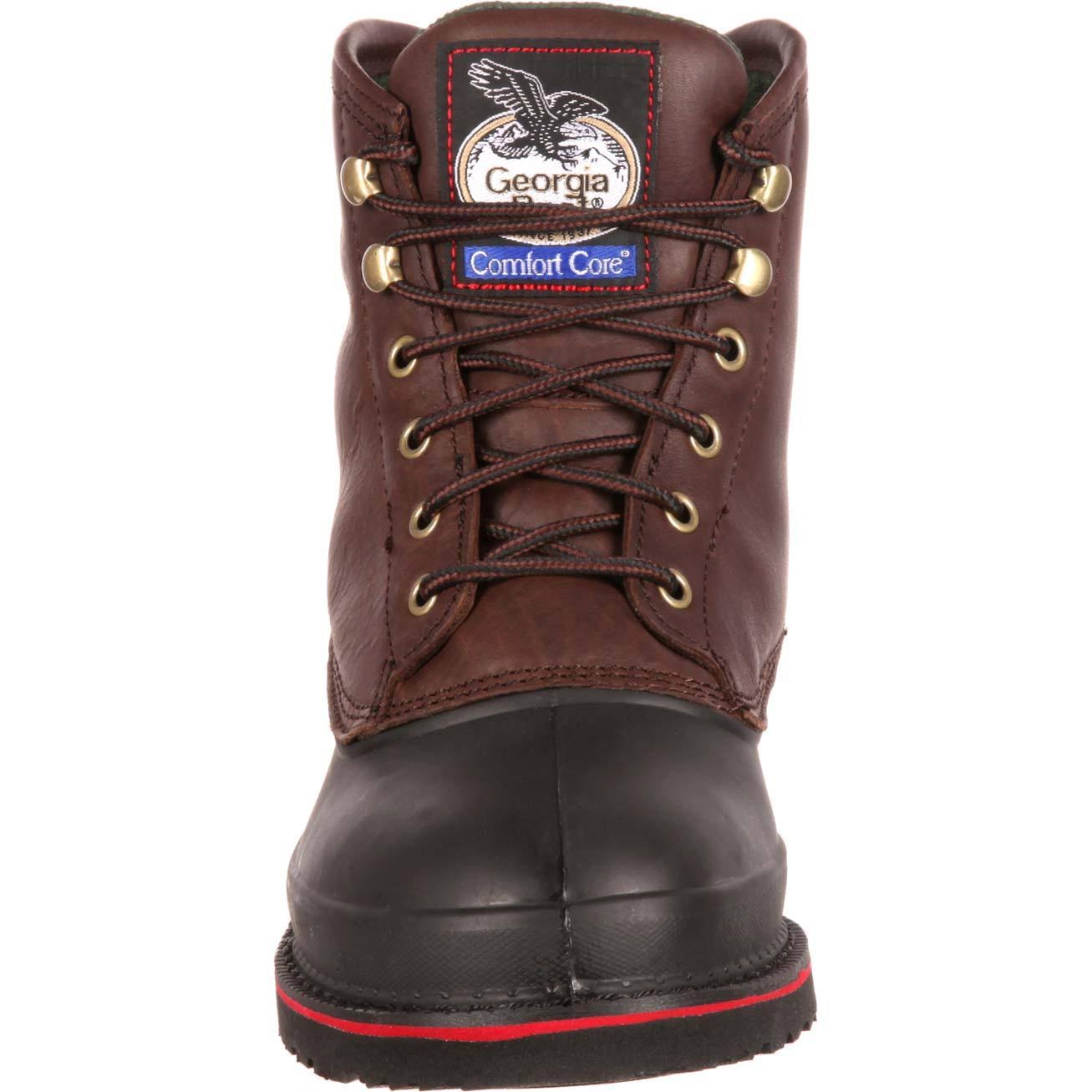 The Georgia muddog steel toe waterproof wellington offers on-the-job protection for many occupations. It's waterproof, durable and comfortable, while offering a protective toe. The molded tpu shell is easy to clean even after a long day of messy, dirty work. An exclusive SPR leather undergoes a special tanning process that makes it resistant to organic acids and chemicals and three times stronger than regular leather. This is complimented with a long-wearing, chemical- and oil-resistant weave outsole that also offers cushioning and flexibility. This men's boot also is equipped with a steel toe that meets ASTM standards for protective toe and electrical hazard.