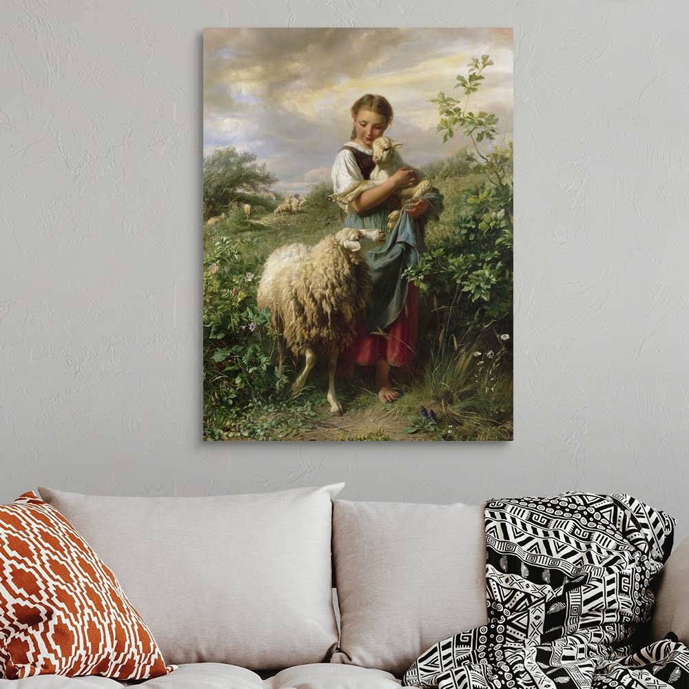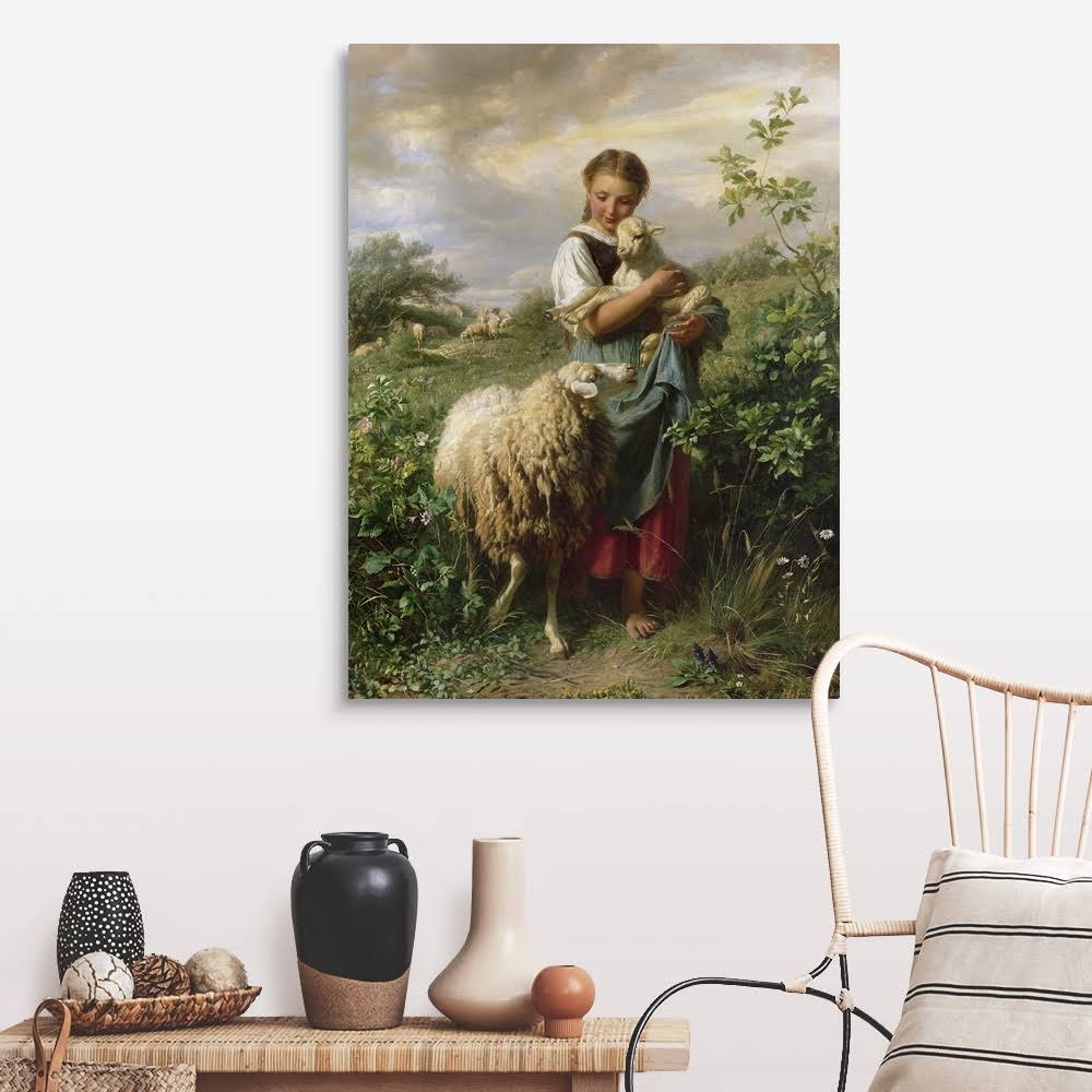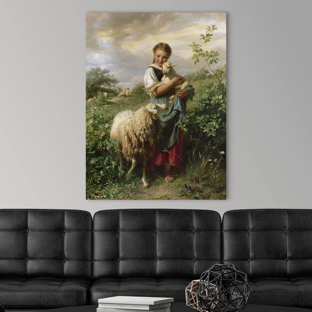 CH35082 The Shepherdess, 1866 by Hofner, Johann Baptist 1832-1913 Private Collection Photo .... Christies Images German, out of copyright. Multiple sizes available. Primary colors within this image include Black, Light Gray. Made in the USA. All products come with a 365 day workmanship guarantee. Archival-quality UV-resistant inks. Canvas depth is 1.25 and includes a finished backing with pre-installed hanging hardware.