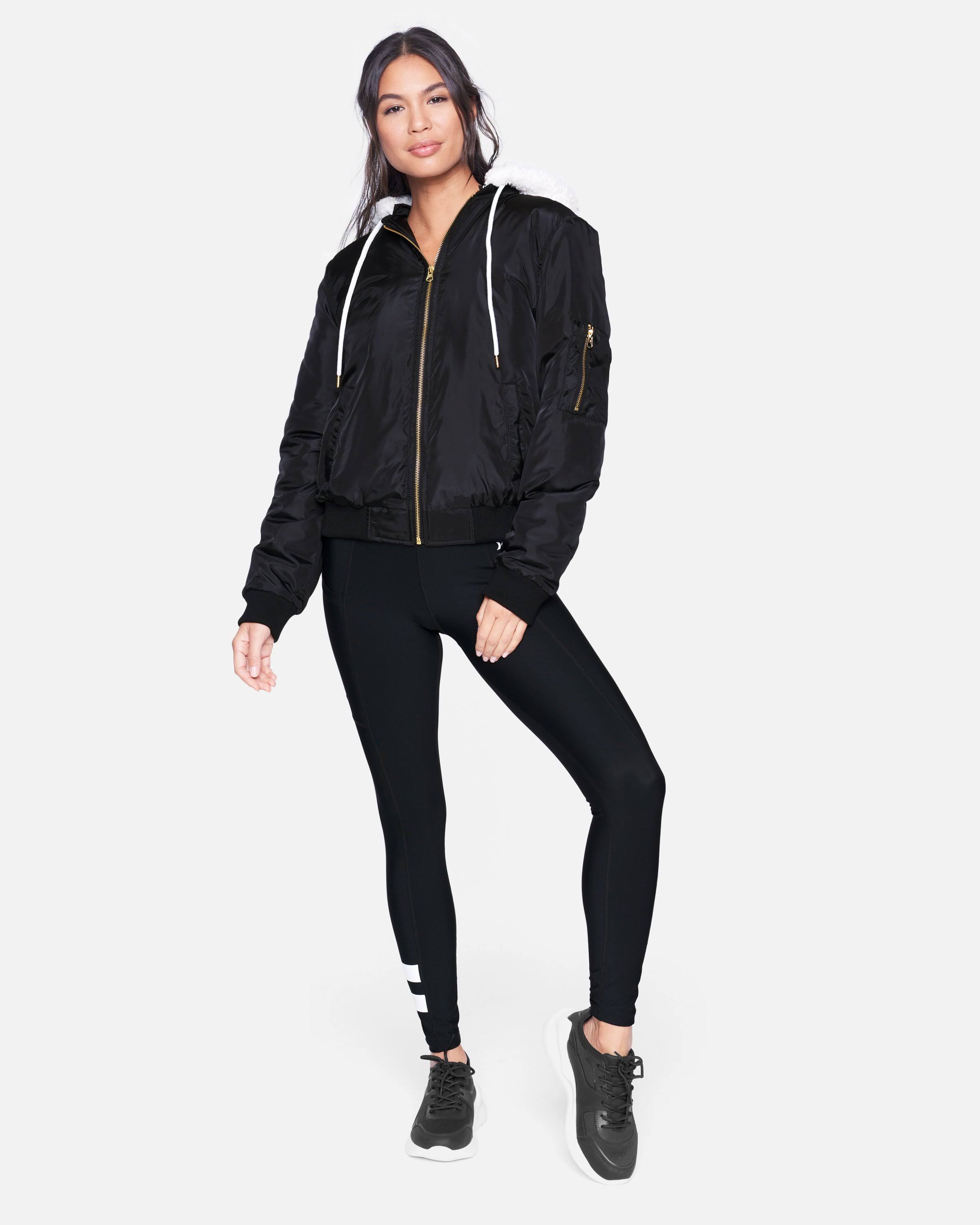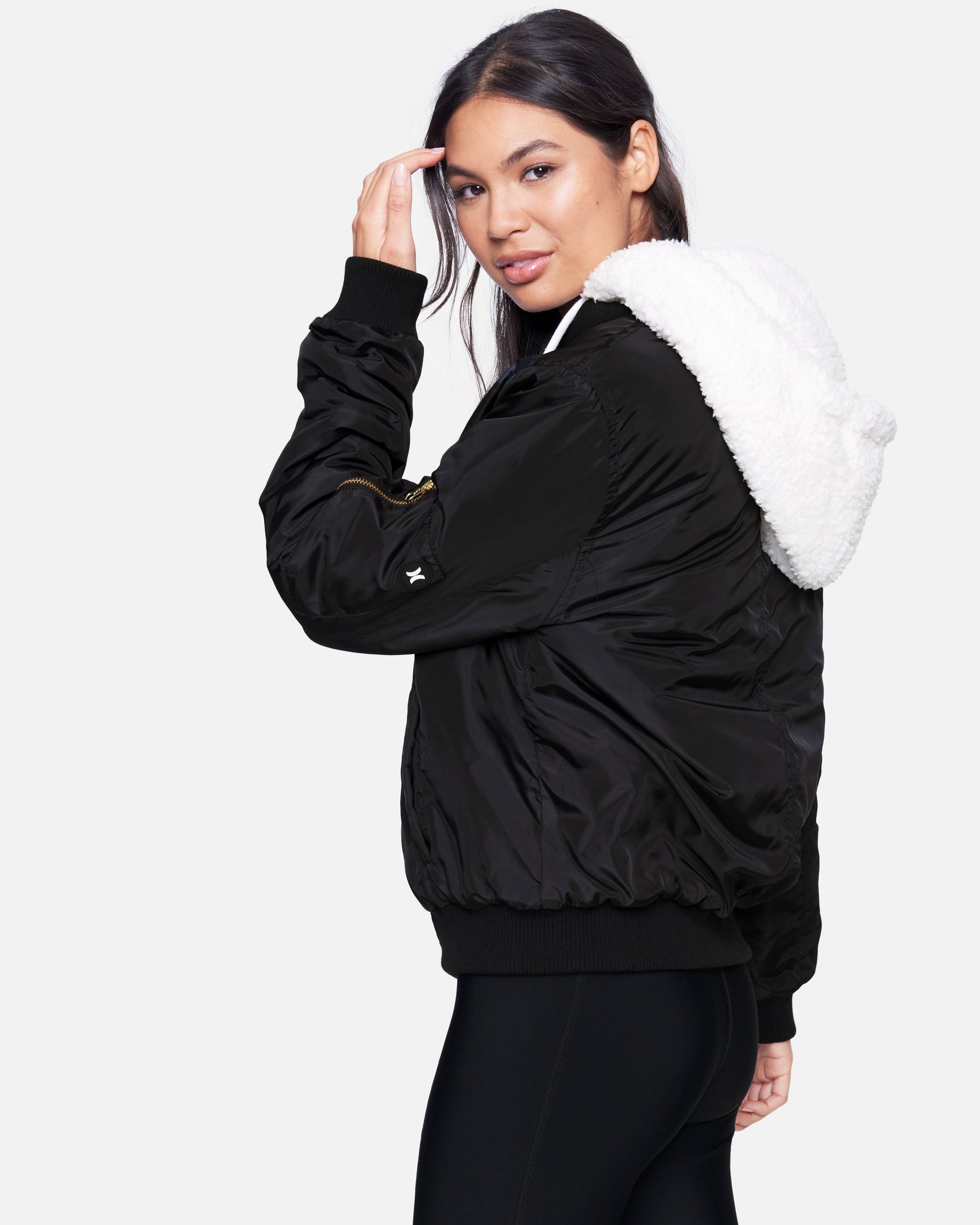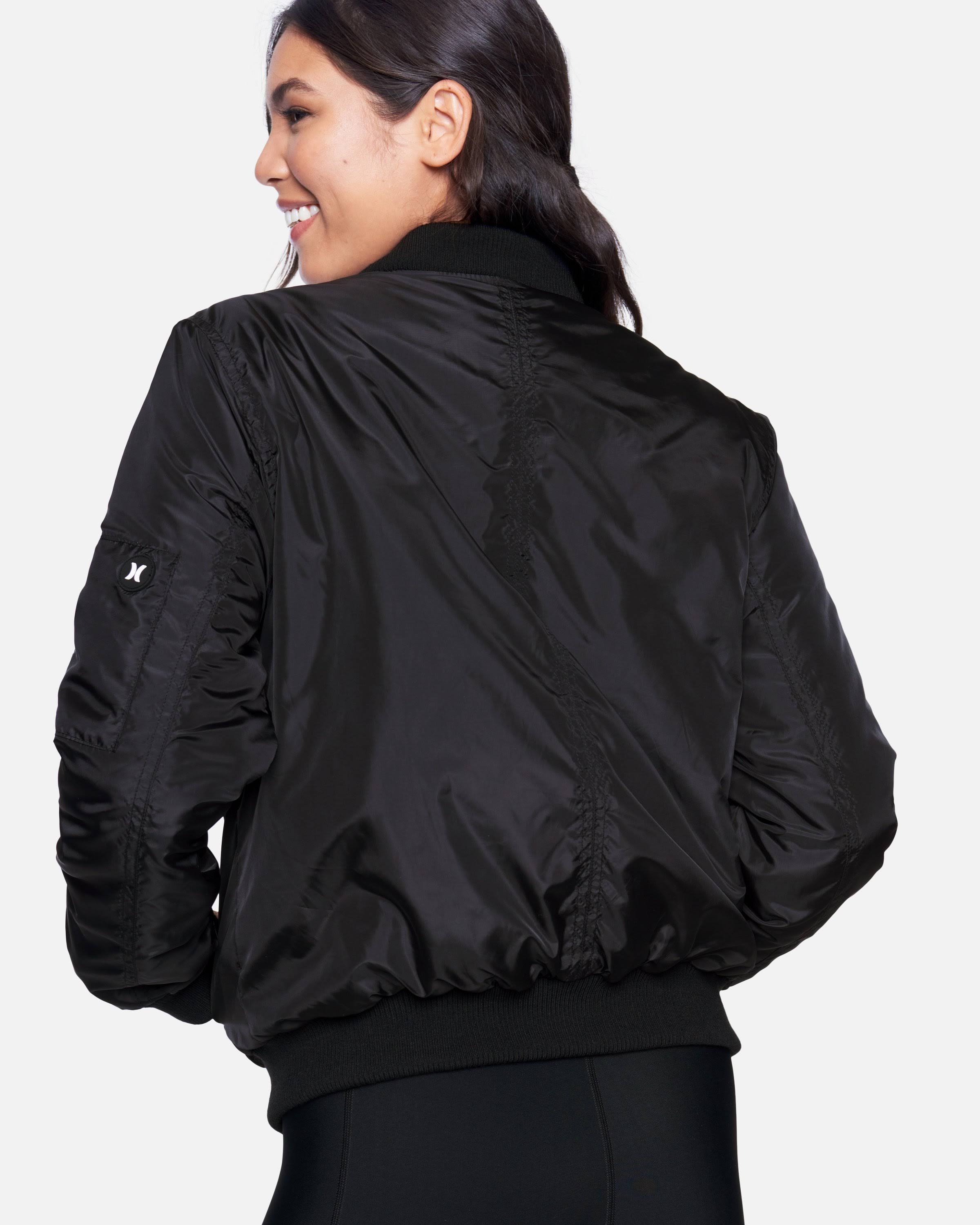 Women's Hurley Sherpa Hood Bomber Jacket, Size: Small, Black